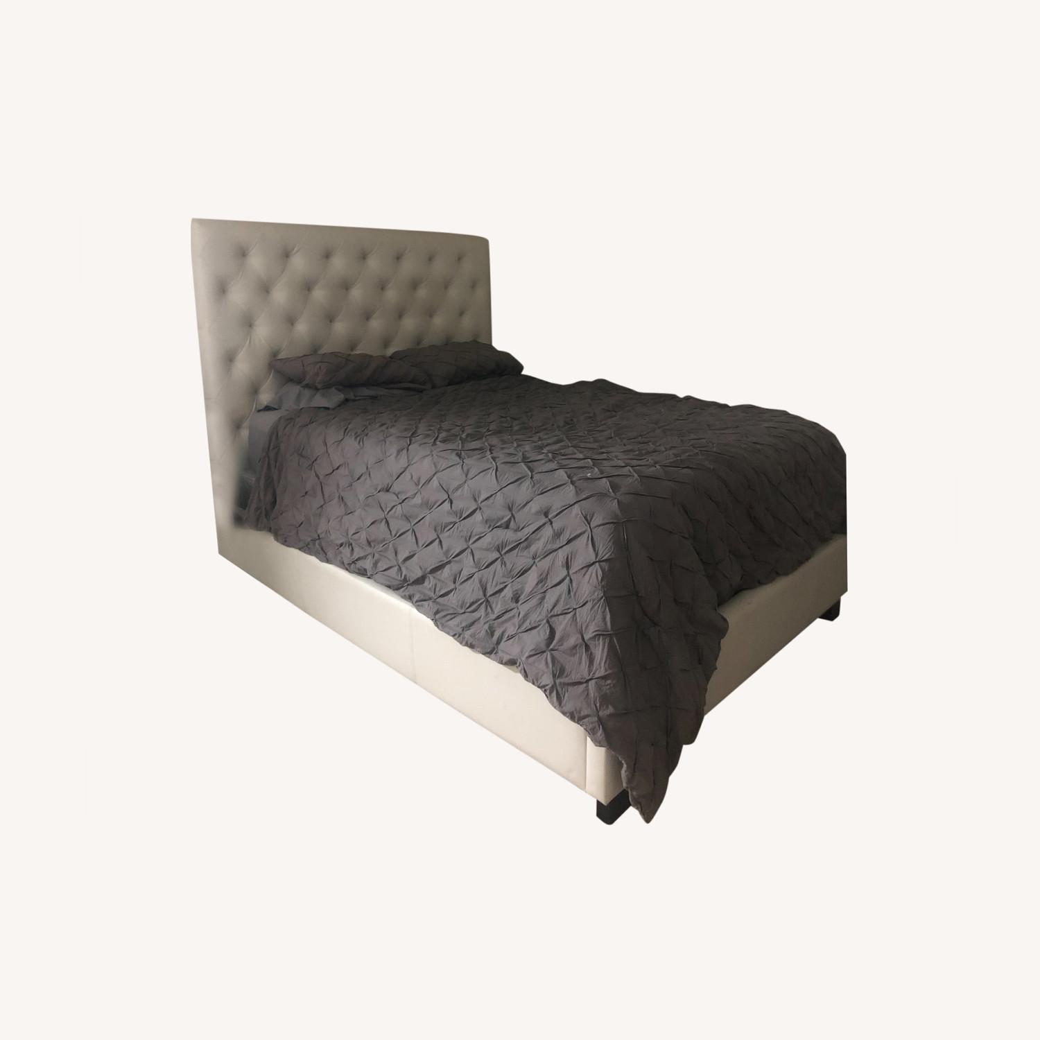 Seller's Notes:About 3 years old. No obvious tears or stains. Easily wiped clean because it is made of leather. There are a few missing wooden panels underneath the frame, that does not cause a problem.