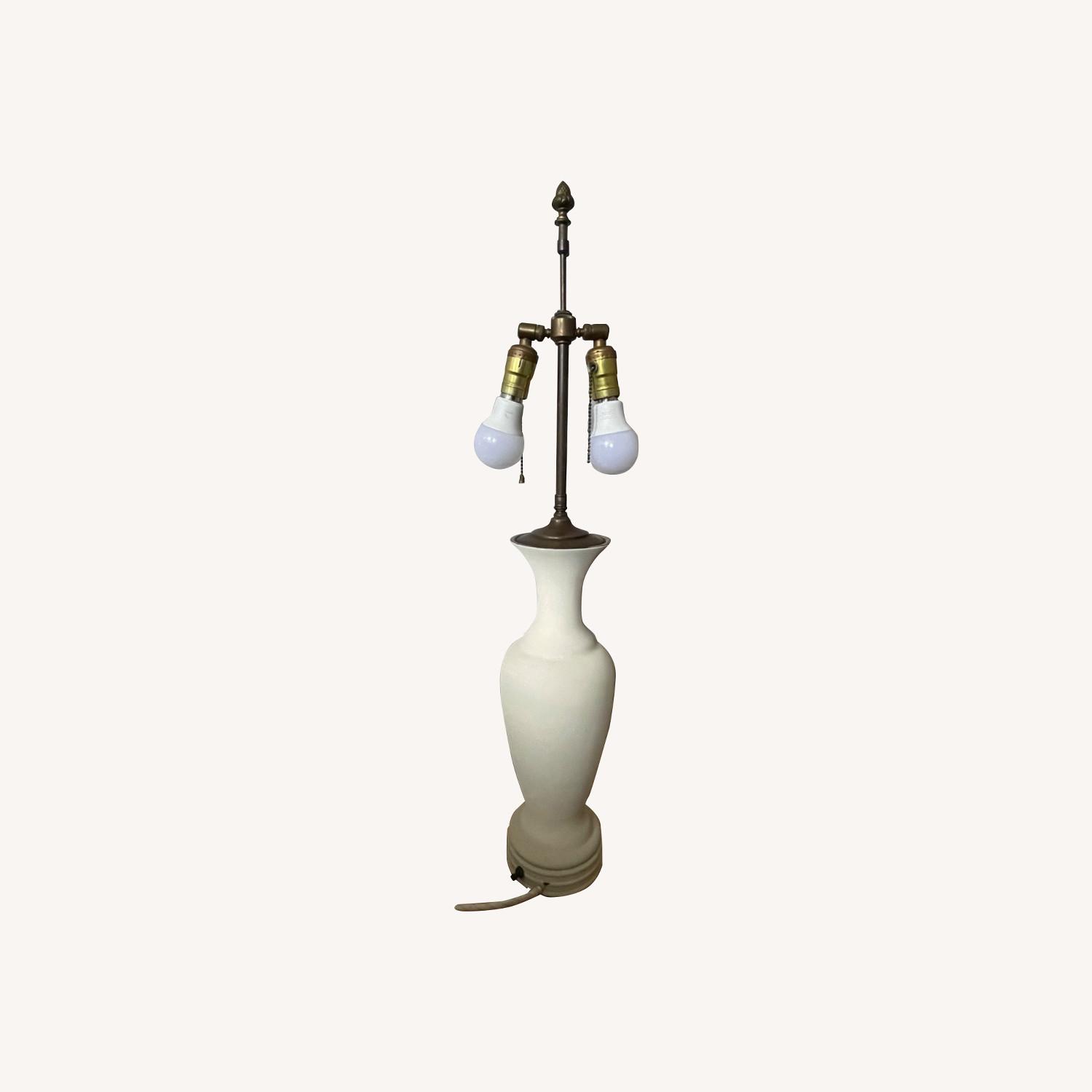 Seller's Notes:Upcycled vintage table lamp made into a modern matte cream table lamp. Sockets and plug are brand new. Modern/contemporary/mid century/boho styles work perfectly with this lamp. Versatile.
