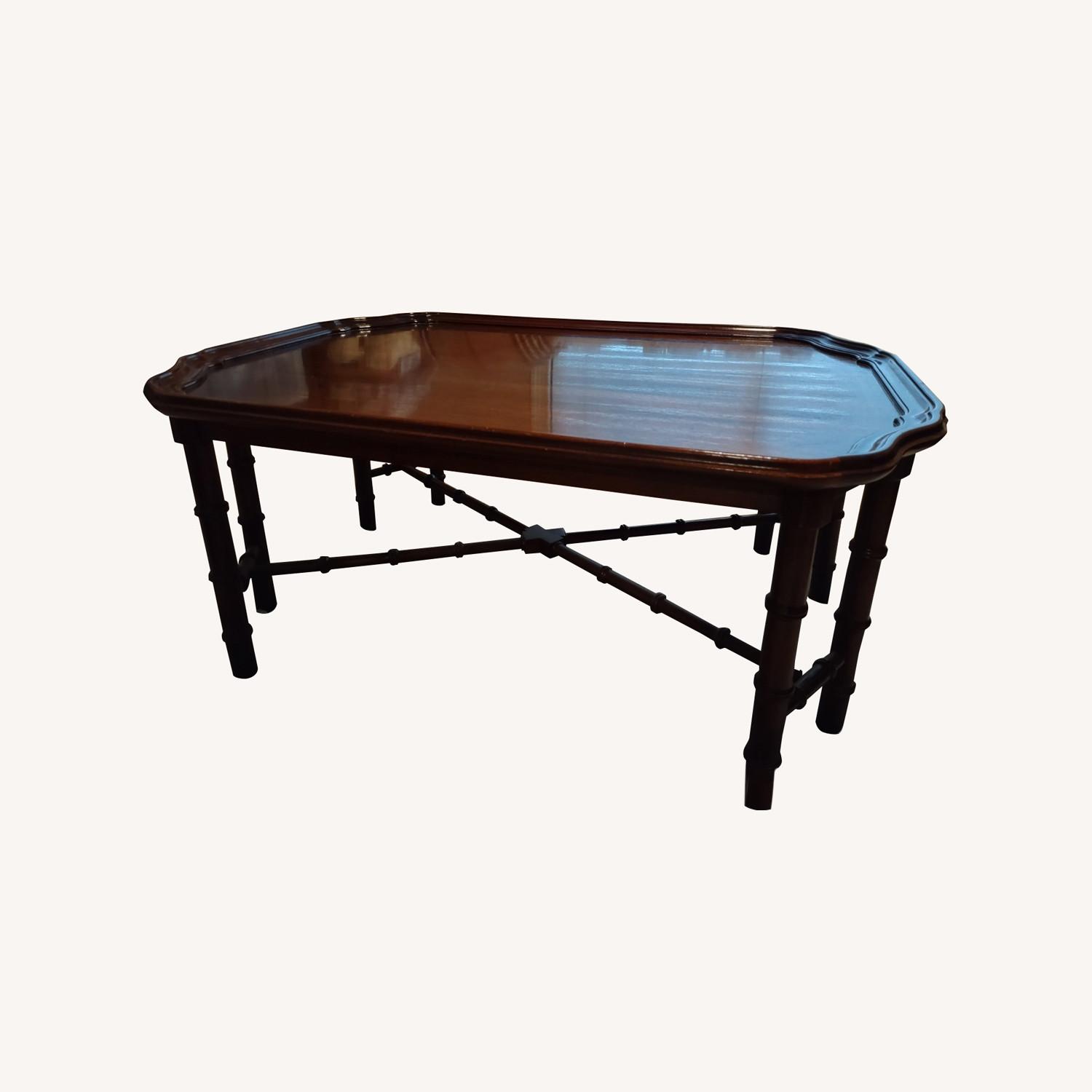 Seller's Notes:Custom-made by the DAVIS CABINET COMPANY, out of Davis, California. Stained maple. Surprisingly lightweight. The entire top piece comes off for easy and safe transportation. As shown in the pictures the undercarriage is comprised of four spindles, hand turned to look like bamboo, each one attached to one of the four legs, intersecting in the middle in an X-MARKS-THE-SPOT design. Circa:1940 Very good vintage condition. This has been well loved and taken care of for almost 80 years, it's looking for a new home where it can continue to be loved for many more.