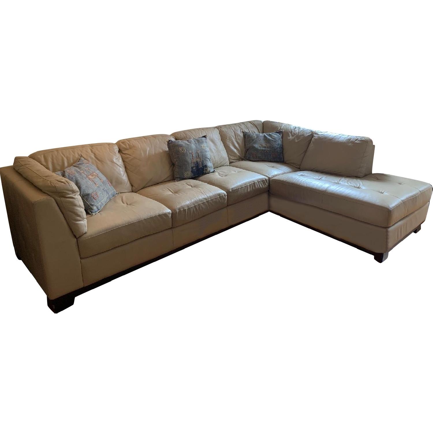 Custom Cream Leather Sectional Sofa
