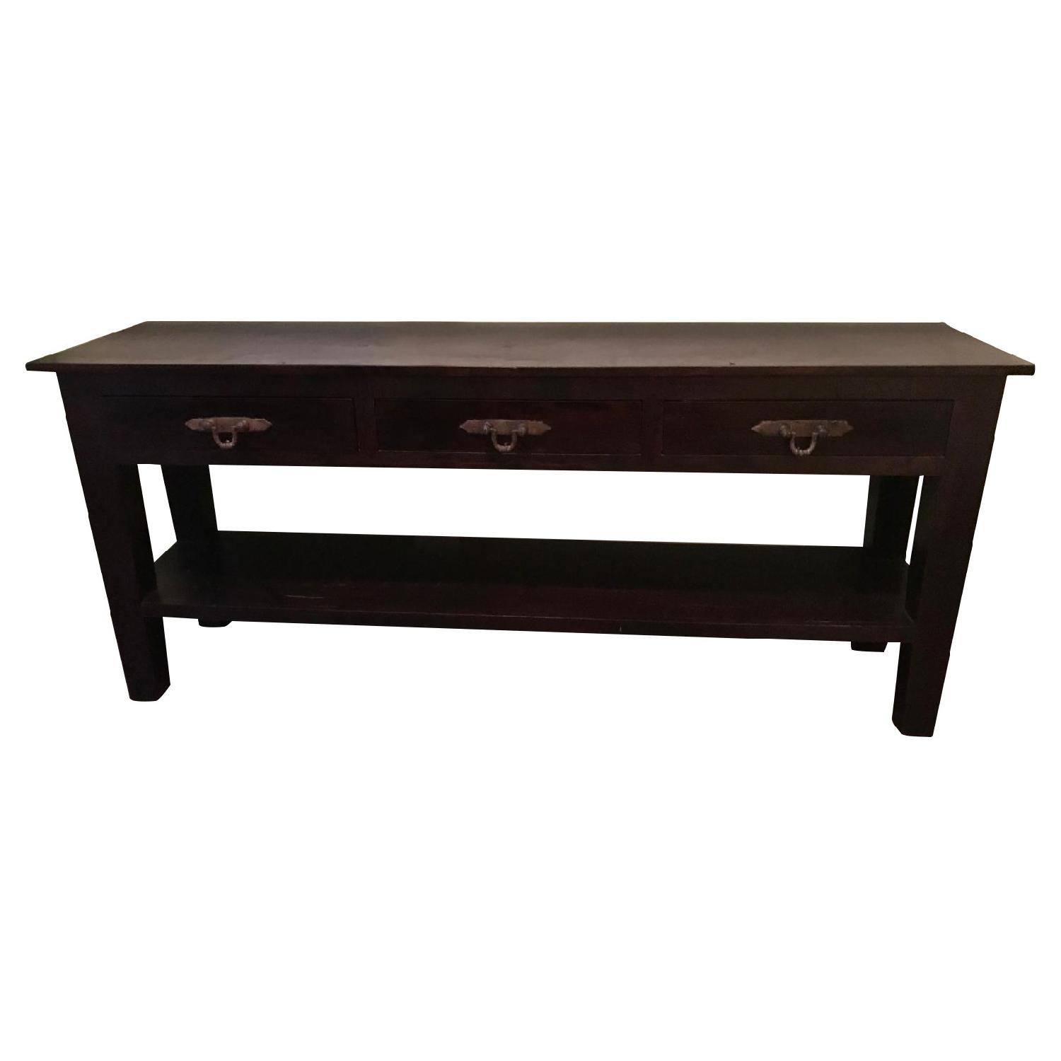 Seller's Notes:I bought this custom-made, hand-made Indonesian wooden console two years ago for my healing arts office. It has always served us well as both an office desk and apothecary. It is in excellent condition, with minor blemishes that most won't notice. We are moving and need to get rid of it by March 1st. It is extremely sturdy and excellent quality. Thank you in advance for your interest!