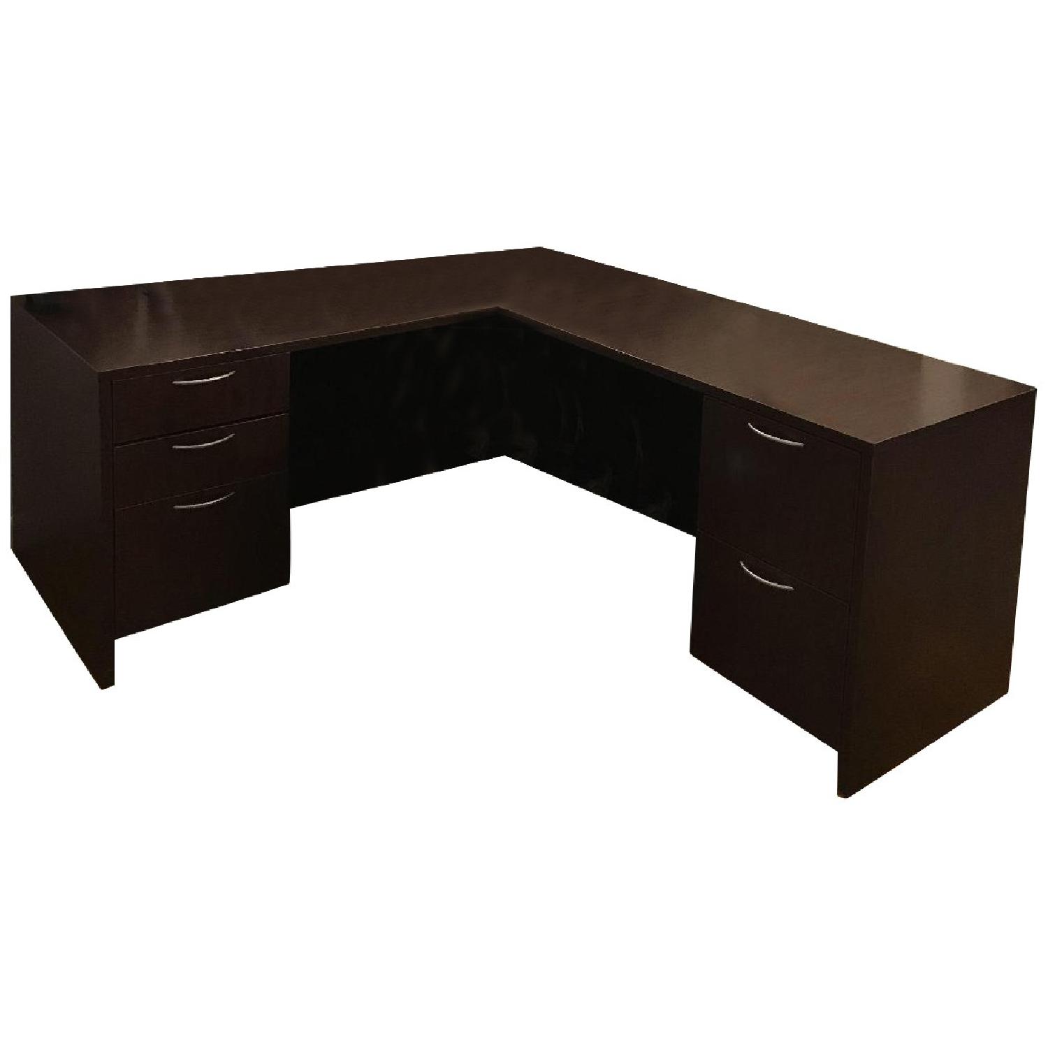 Seller's Notes:I LOVE this desk! It is a real piece of furniture. Custom made cherry wood veneer L shaped desk that is heavy, durable, with amazing work space and double file cabinets. This fits all of your things and looks classy! I am relocating and unfortunately am unable to take it with me.