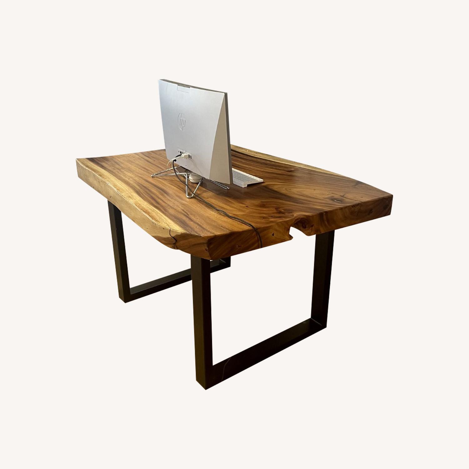 Seller's Notes:Gorgeous exotic hardwood slab table with custom wrought iron legs. Makes a beautiful desk or small dining table. Viewing appointments welcome at our loft in the Meatpacking District.