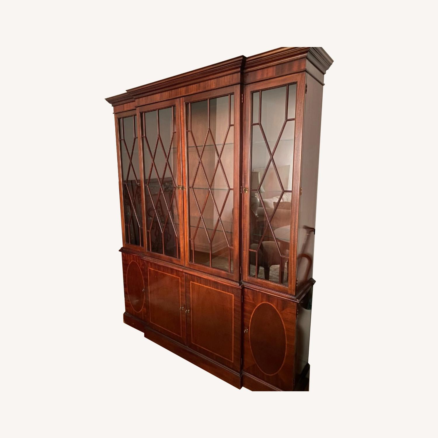 Seller's Notes:Beautiful custom made armoire. Has interior lighting. Wood and glass with wooden details. Very minor scratching on legs, in great condition. Unfortunately I am moving, so I cannot keep, but would love to find a great new home for this gorgeous piece.