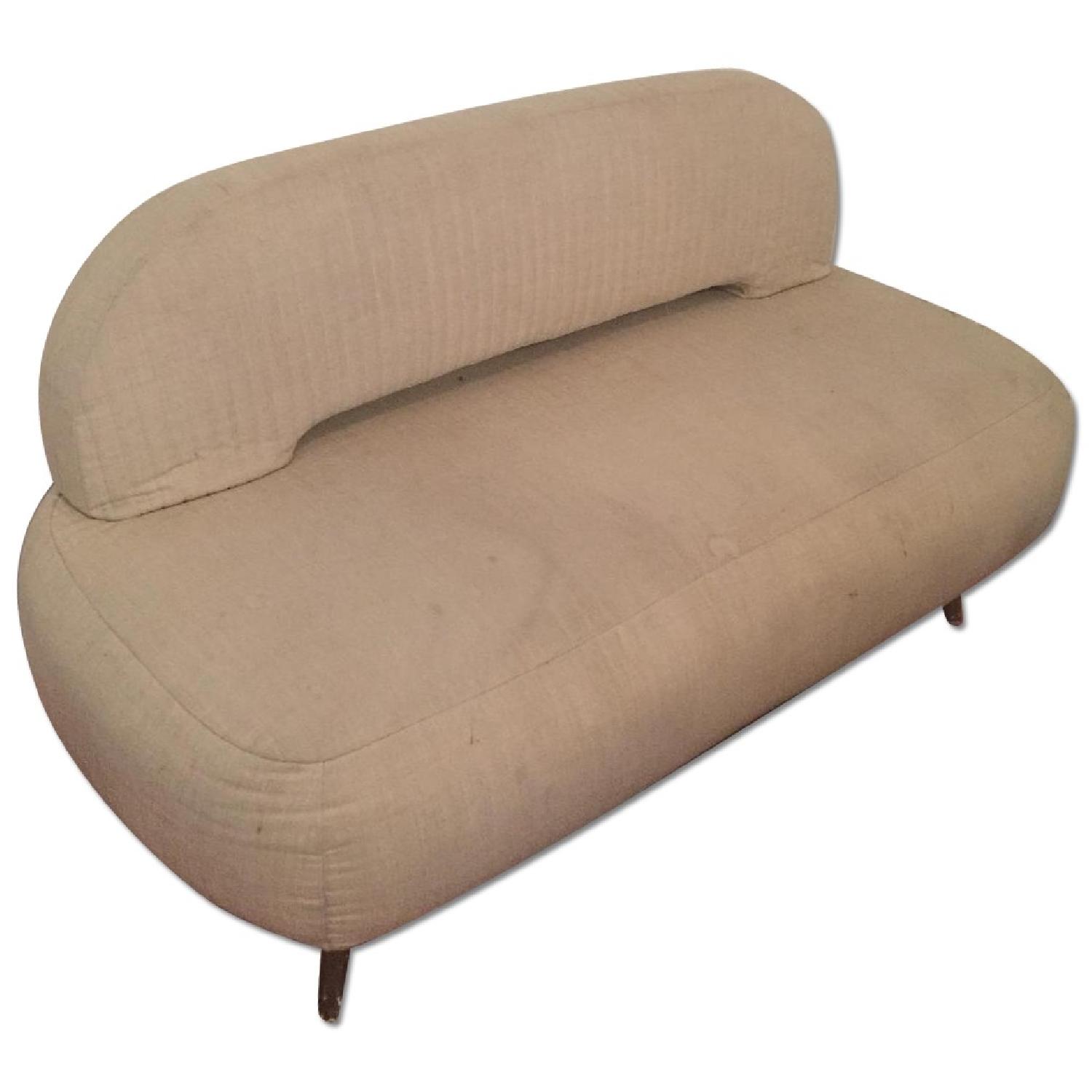 Seller's Notes:This is a custom made banquette sofa perfect for a small dining area. There’s are minor stains on the sofa but can be easily removed with some fabric cleaner. It is a mid century modern style sofa.