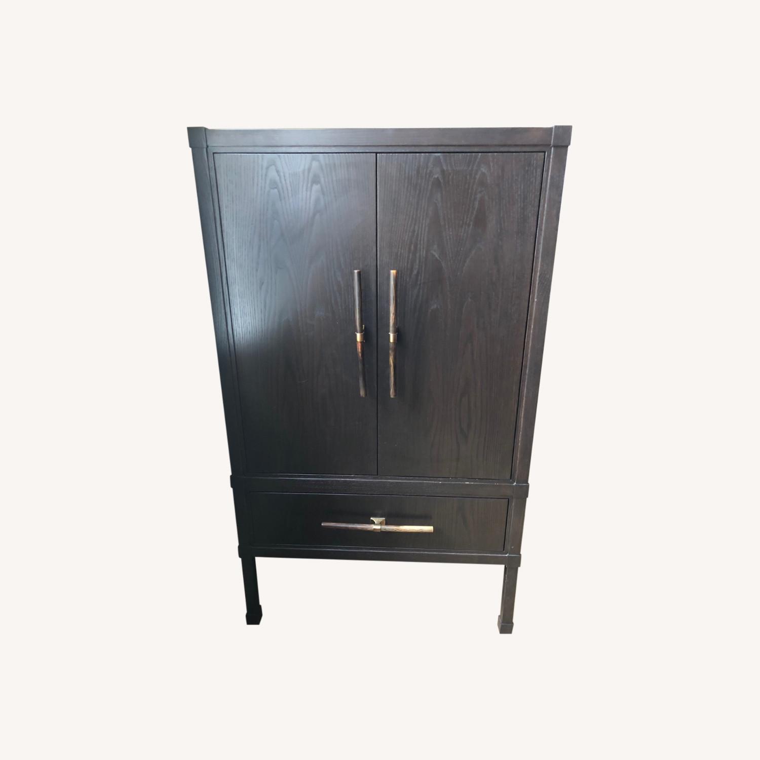 Seller's Notes:A richly grained, dark wood cabinet, custom-made by Dune, in excellent, almost new condition. The handles for the cabinet doors and drawer are made out of a beautiful faux-horn material. I used it as a printer cabinet, and there is a hole in the back (intentionally made) for wires to pass through. Dune charged me $1,500 to make it, but it's yours for a tenth of that!