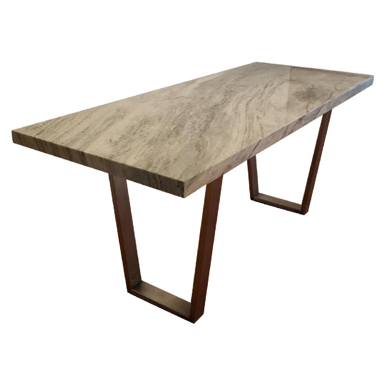 Seller's Notes:Custom designed marble table perfect for NYC apartments. The table is 30 inches wide, 72 inches long and 31.25 inches high. Unique grey stone top works will a multitude of color schemes. Can be used as a desk or dining table.