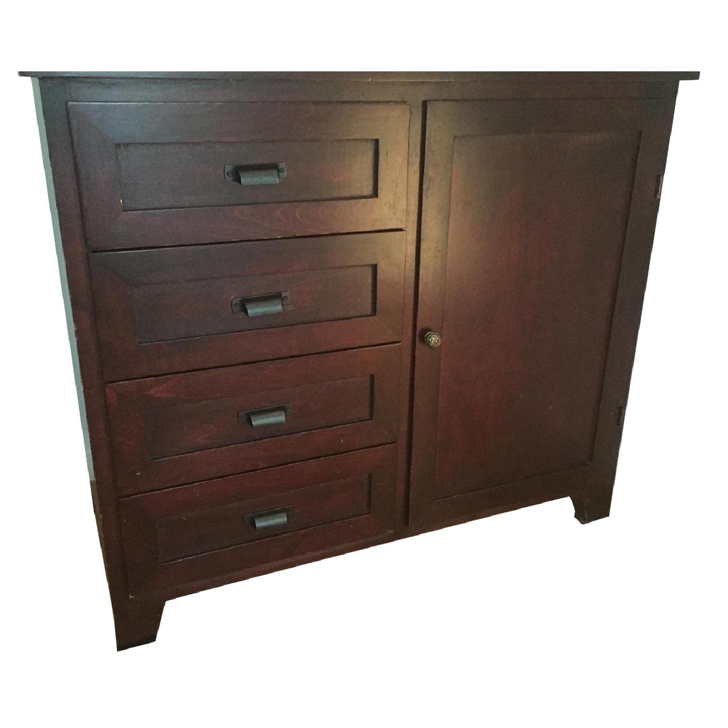 Seller's Notes:Customer made wood dresser. - 4 big, deep drawers on the left side - 1 door on right with a shelf inside - amazing knobs Works great for clothes, papers, supplies or as a TV stand.