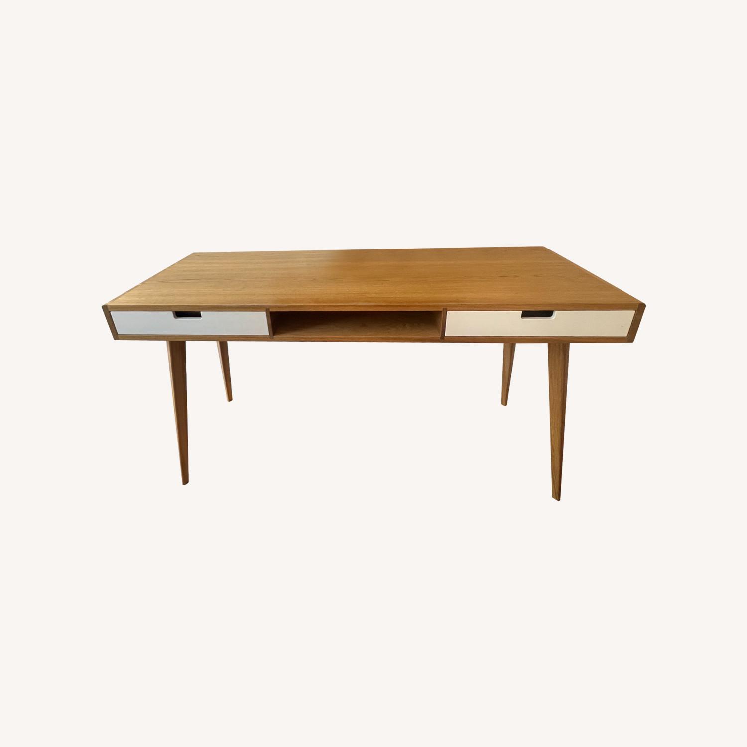 Seller's Notes:Hand crafted mid century modern desk in very good shape. Looks great in any office setup. Ample space for a laptop + monitor + desktop writing while also space-efficient. Deep drawers for storage. Purchased for $1k (see link below). For another $50, you get a monitor with it! Etsy reference link: https://www.etsy.com/listing/532832076/heim-modern-oak-desk-with-white-drawers?ref=yr_purchases