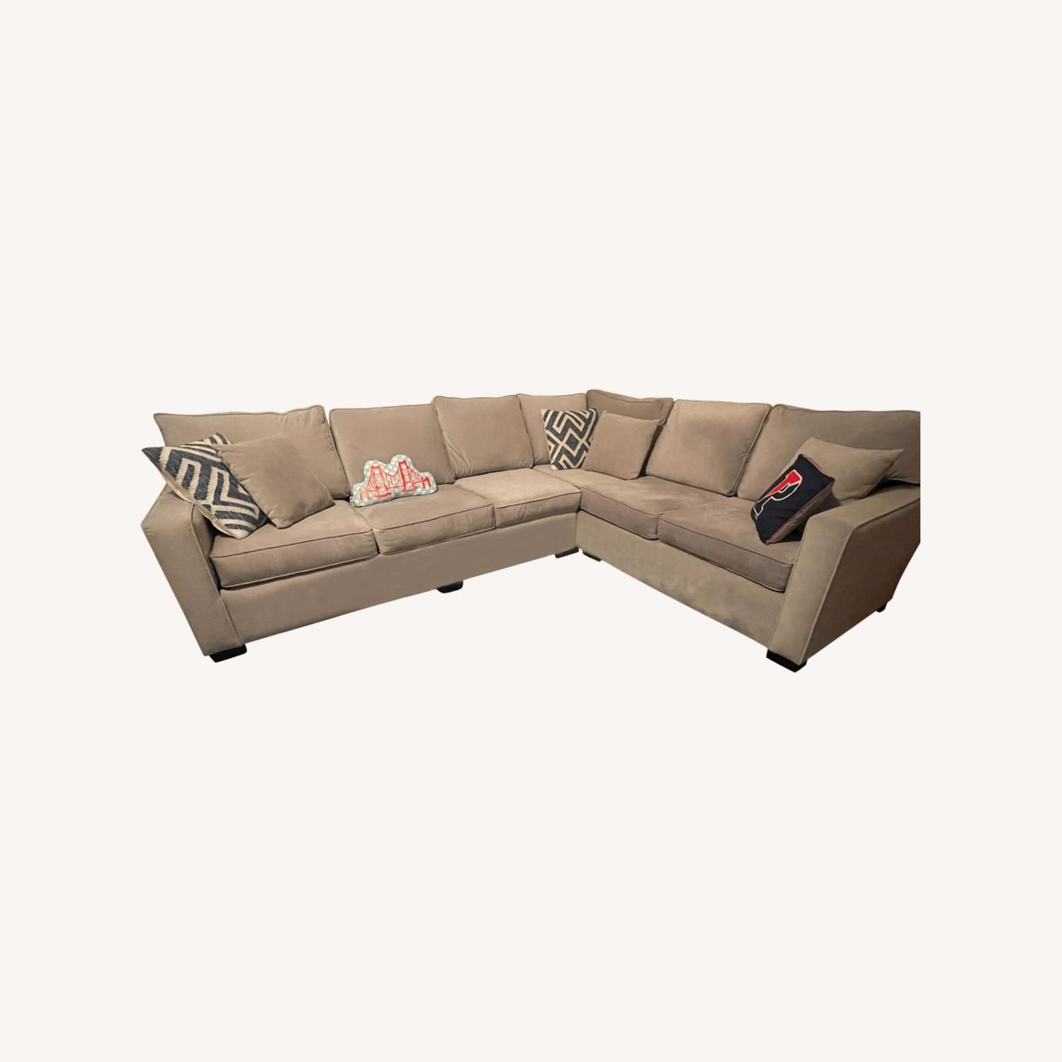 Seller's Notes:My husband and I had a couch custom made for our apartment - we love a good sectional and also needed a sleeper sofa so we had one made that has both! We also had it made with a very soft brushed-velvet like material so it super comfortable and premium. The couch is in great condition as we traveled a ton and didn't get a chance to make the most of it. The pull out is a full sized bed and it's so comfortable and perfect for visiting guests. We are moving and wish we could take this couch with us and would love for it to find a great home. 113 inch (long side of the couch) 91 inches (shorter side of the couch) 37 inches (depth; from the arm rest to the wall) 25 inches height (measured from the arm rests)