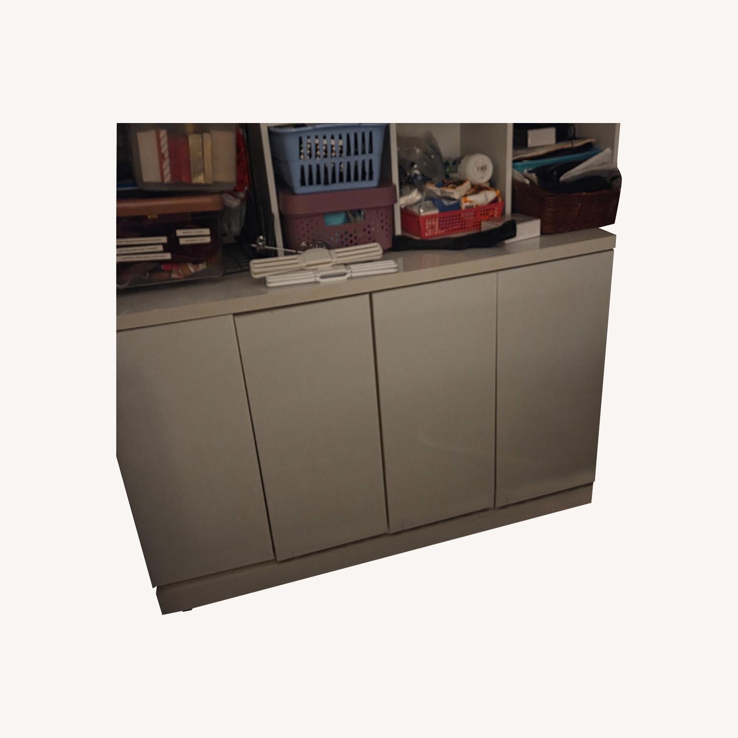Seller's Notes:White Mica Storage Unit with 2 shelves in each side. Used as a bedroom piece, but can be used as a credenza.