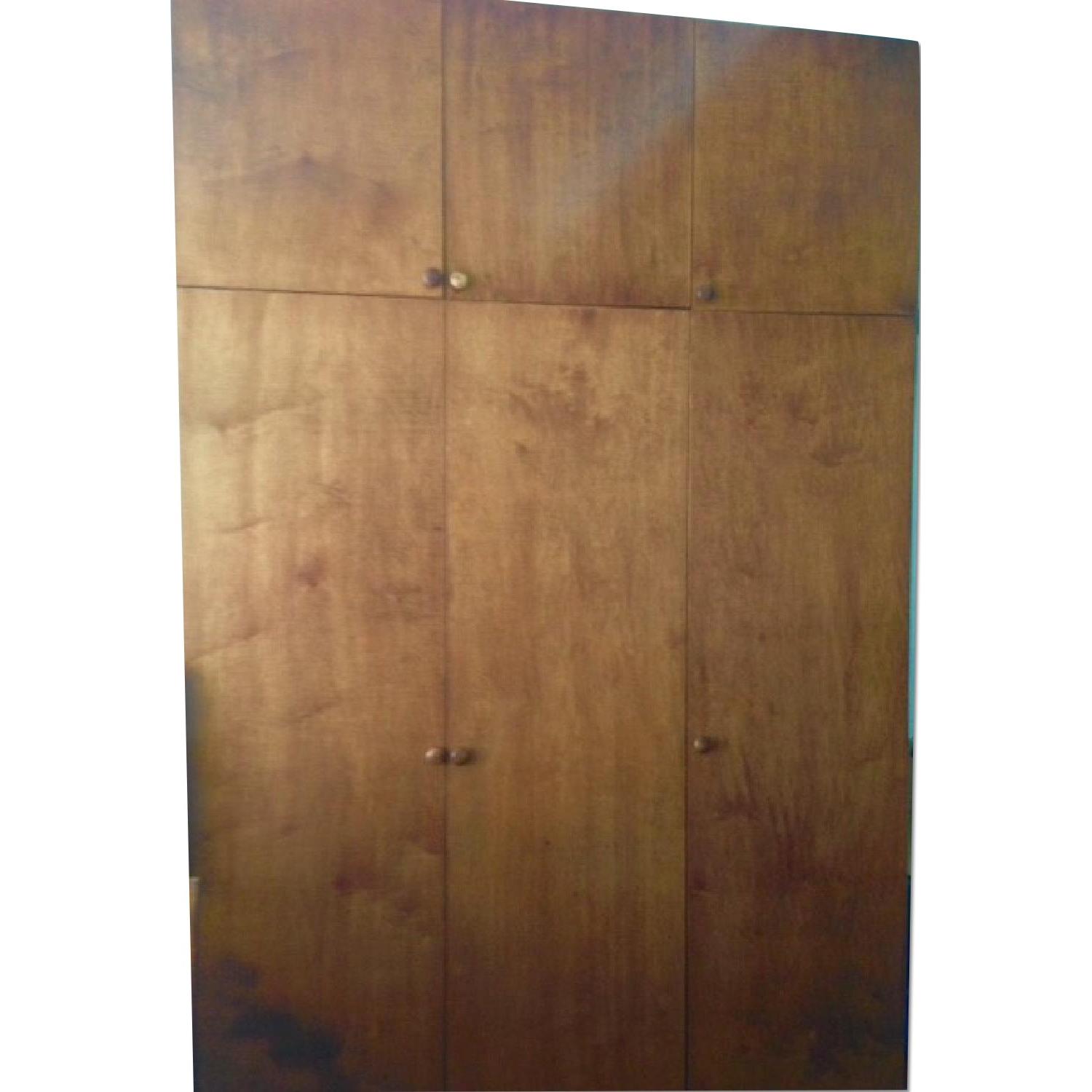 Seller's Notes:Custom-made Cherry wardrobe. Has space to hang clothing, shelves and draws, with 3 more storage cabinets on top. In pristine condition. Willing to take best offer.