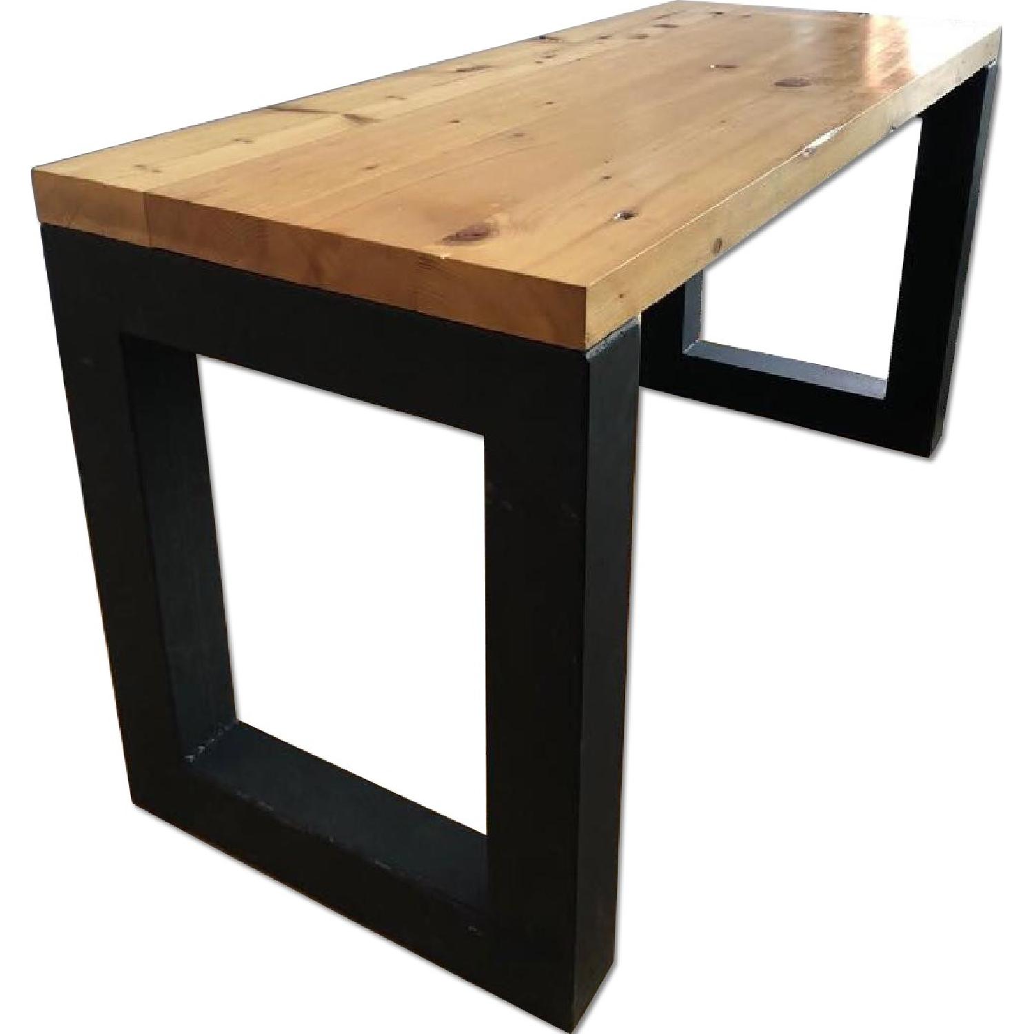 Seller's Notes:This is a high quality- custom made- table/desk that was lightly used for 1 year at my office. We are selling it because we replaced it with a larger desk. Very good shape! Minor scratches on the legs. -2" H table top made of white polished oak. -4" W Black painted steel legs.