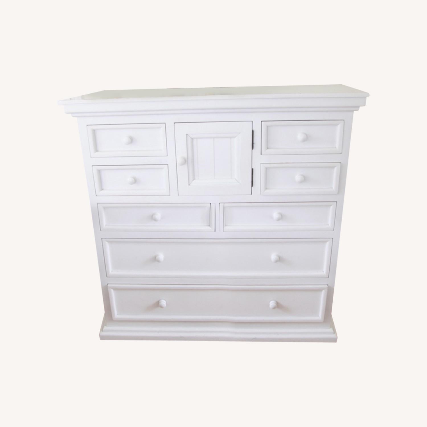 Seller's Notes:Custom White Wood Dresser – One-of-a-Kind Design Add a touch of elegance and uniqueness to your home with this beautifully crafted custom white wood dresser. Featuring a versatile layout with 4 small drawers, 2 large drawers, and a convenient cubby for extra storage, this piece is both functional and stylish. Its pristine condition speaks to the care it's received, and the custom design makes it a truly one-of-a-kind item – something you won't find anywhere else. Perfect for any bedroom or living space, this dresser is not just furniture but a statement piece.