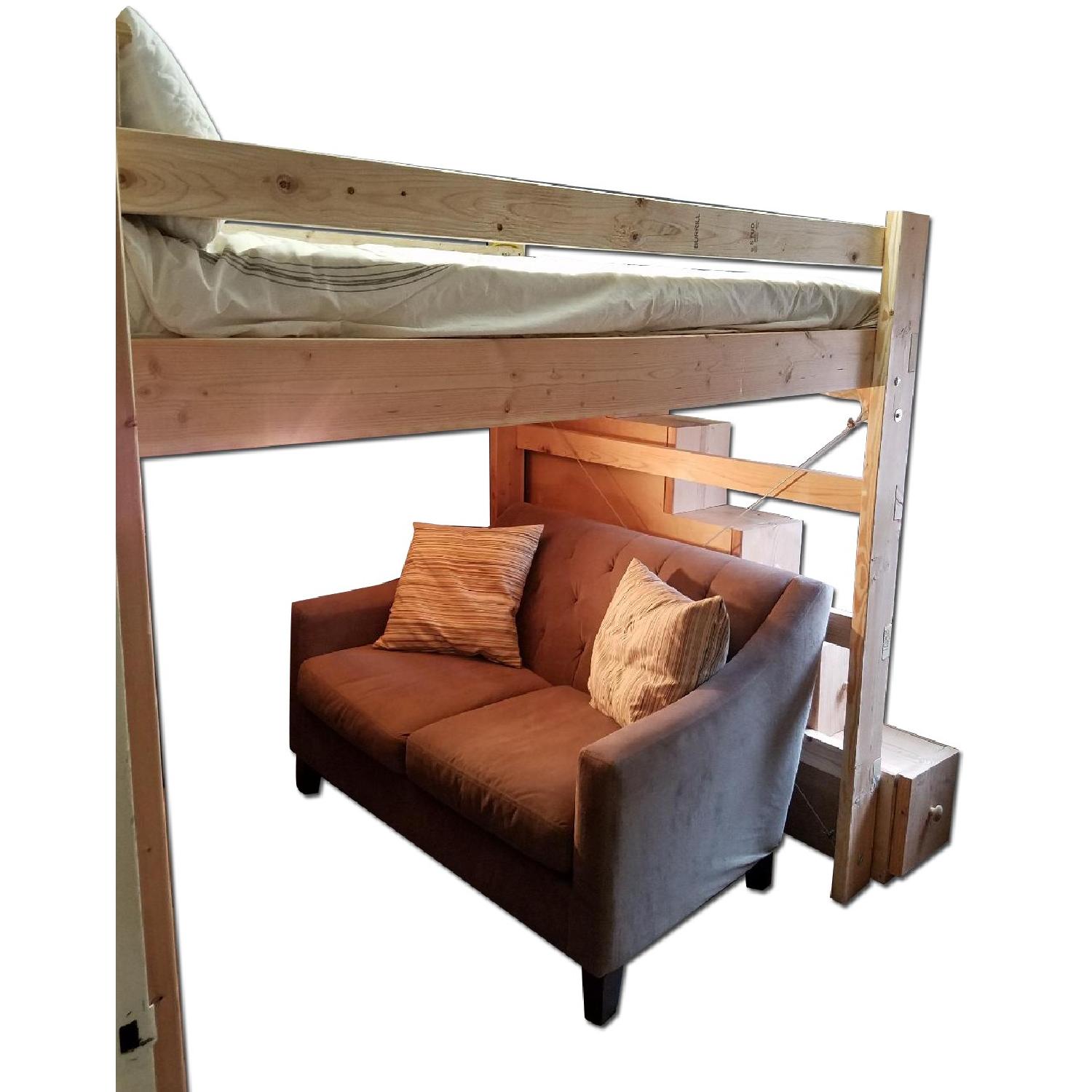 Custom-Made Wooden Full Loft Bed w/ Stairs