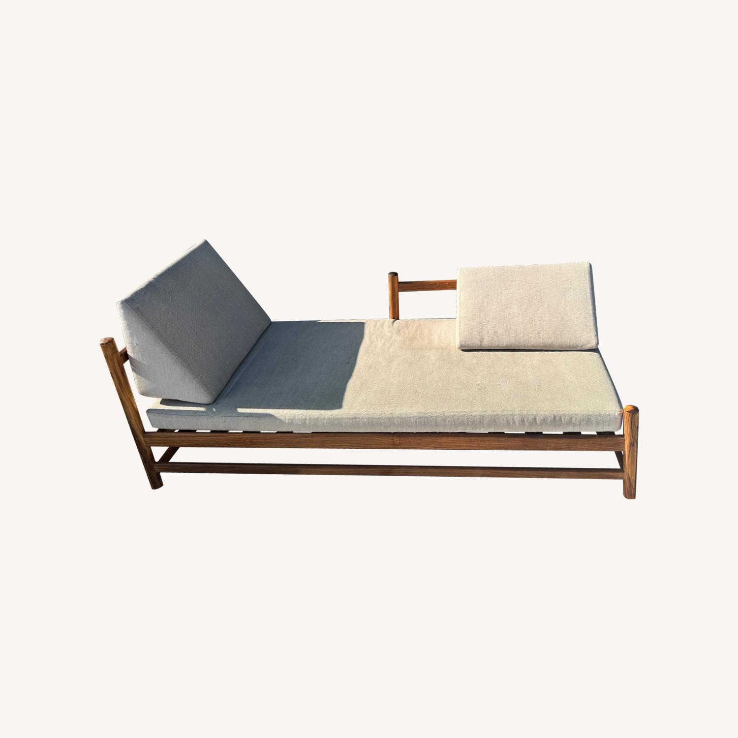 Seller's Notes:Moving to apartment without a balcony. Custom made in Mexico from a seller on 1st Dibs (https://www.1stdibs.com/furniture/seating/day-beds/pita-outdoors-daybed-teak-wood-off-white-denim-leather/id-f_15304381/?gad_source=1&gclid=CjwKCAjw9p24BhB_EiwA8ID5Blr14528jyP02eIt7otmQT6aNDGvU3irSOZ6F6o6hKkXhcYc5j1C-hoC-BEQAvD_BwE&gclsrc=aw.ds)