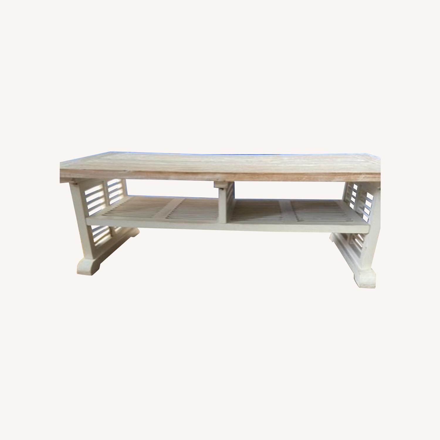 Seller's Notes:Making a life change and going to full time RV for a while. Love this solid wood one of a kind coffee table (see also matching end table). In flawless condition with no noticeable marks. White distressed paint.