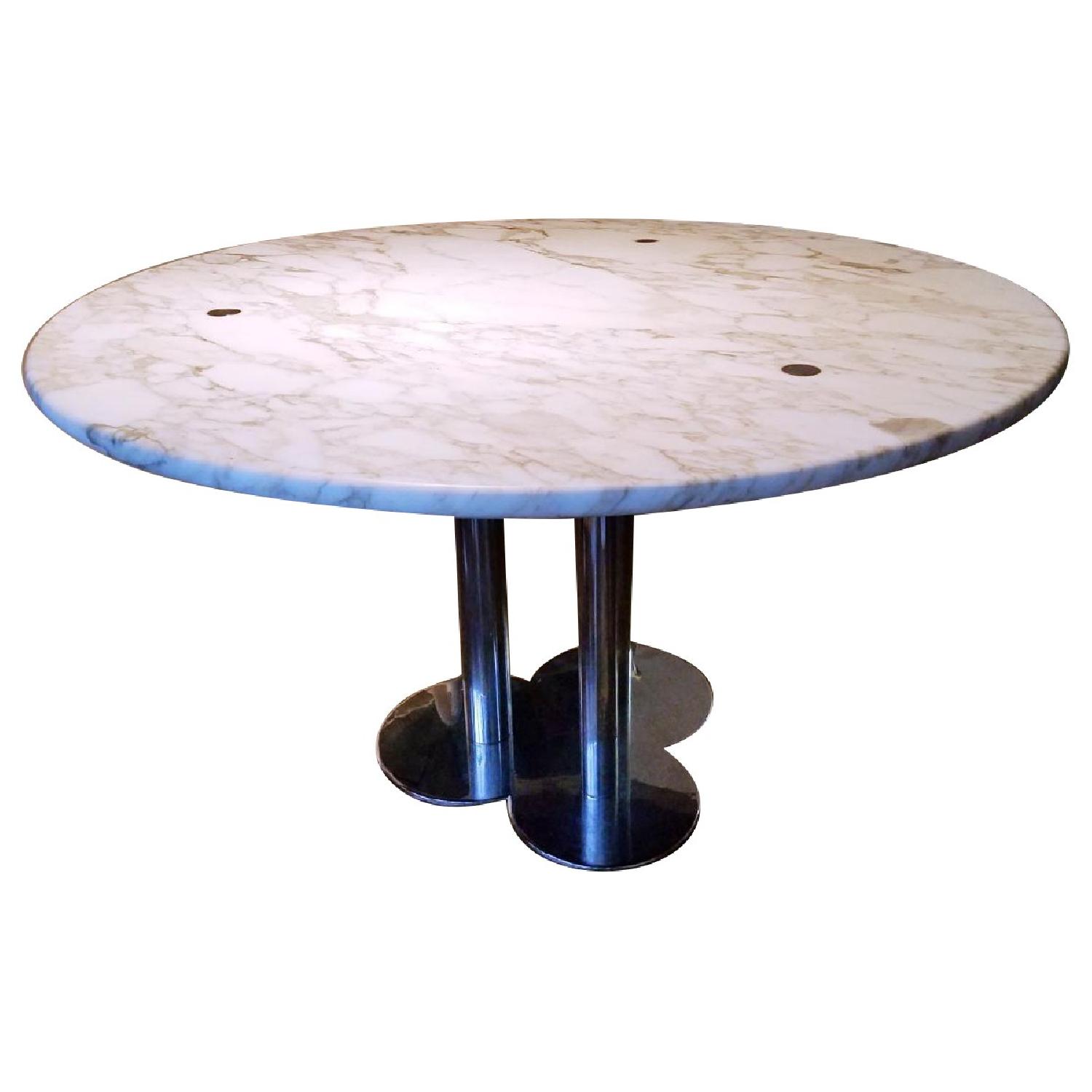 Custom Round Marble Top/Steel Base Dining Table