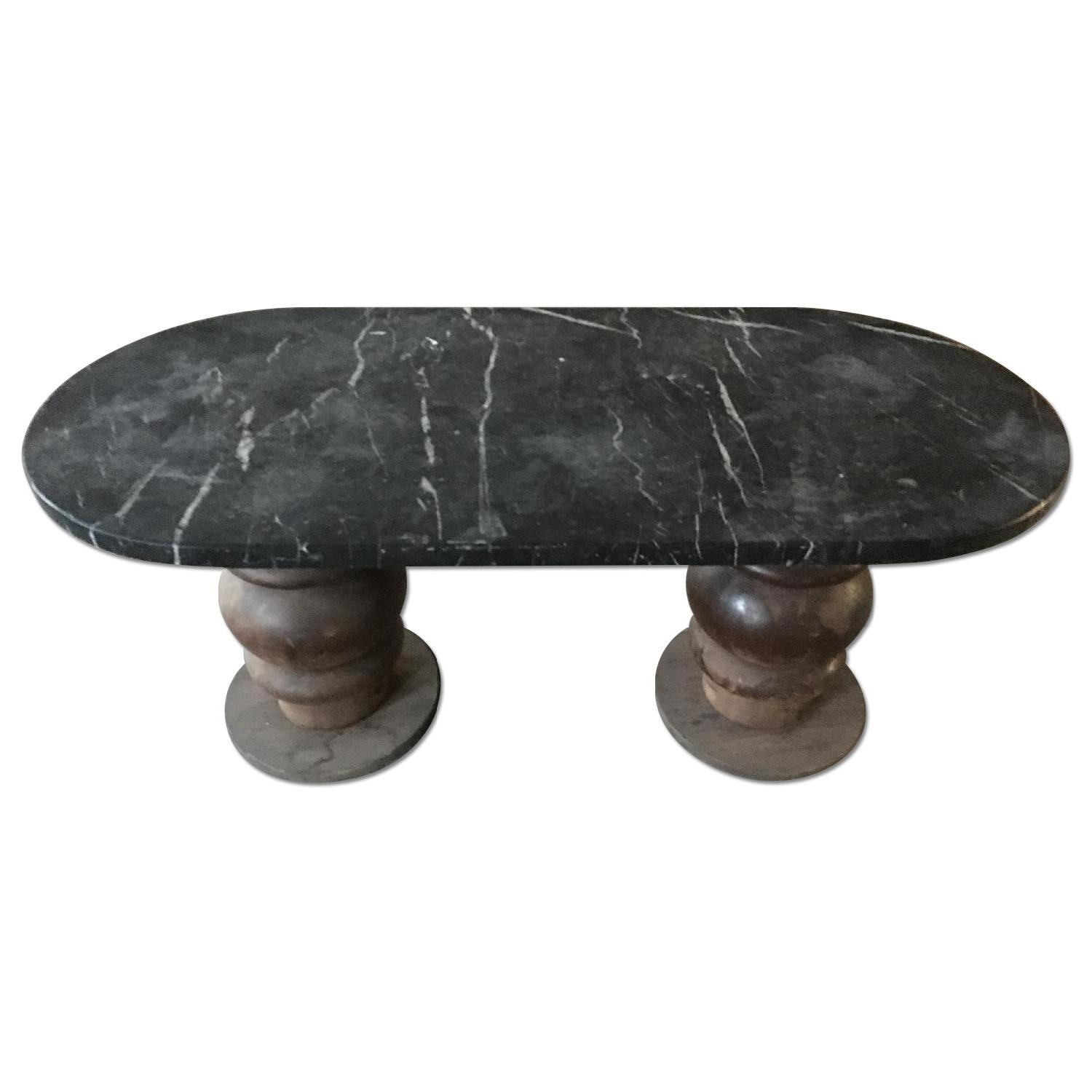Custom Solid Black Marble & Solid Wood Coffee Table