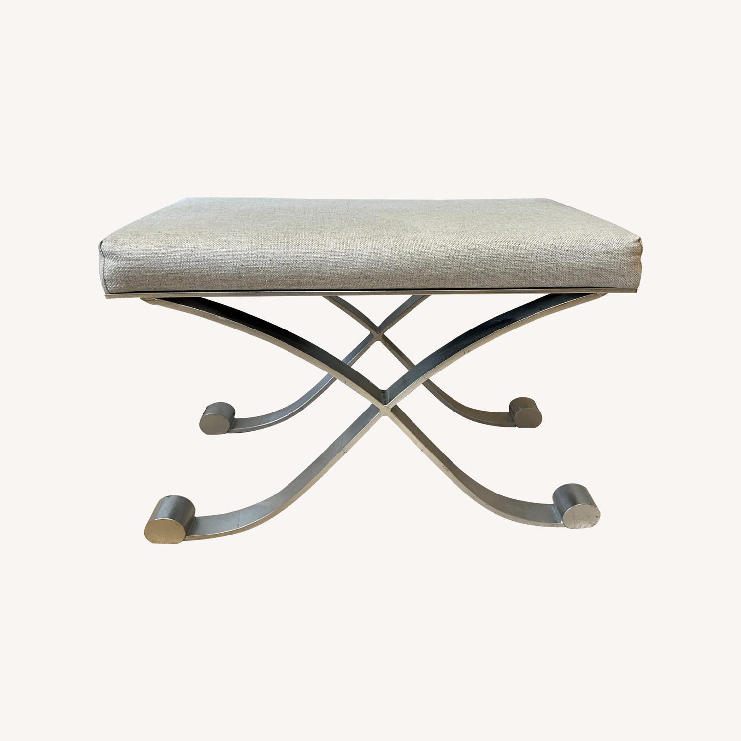 Seller's Notes:Custom Tweed Fabric Bench with Metal Leg Cushion in silver cream color some scratches on the legs in great condition