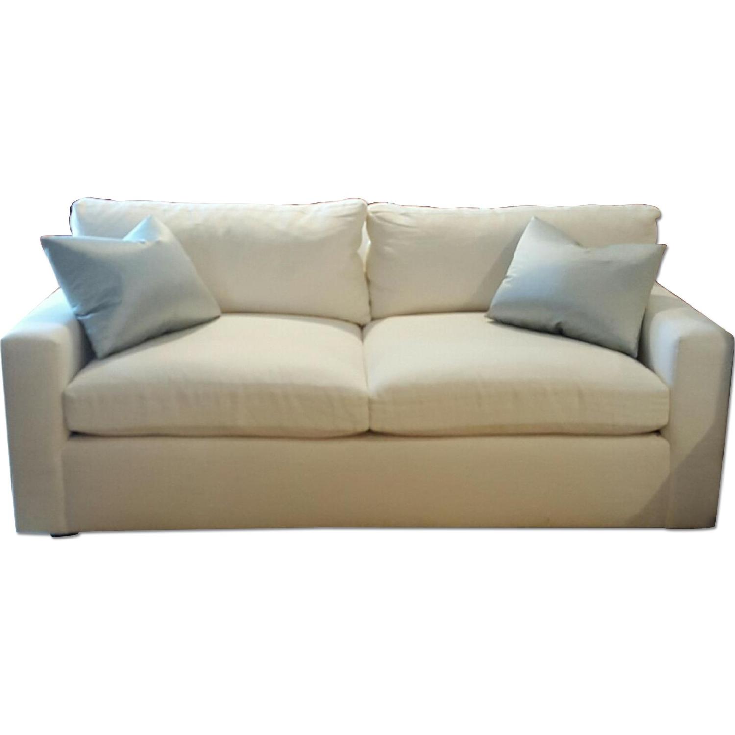 Custom White Linen Upholstered Sofa