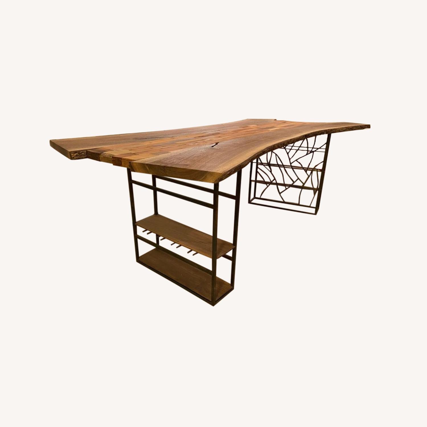 Seller's Notes:This is a like-new custom dining table. The top is made from a cross-section of a very large tree. The legs are two shelving units, currently unattached so this can be moved more easily.