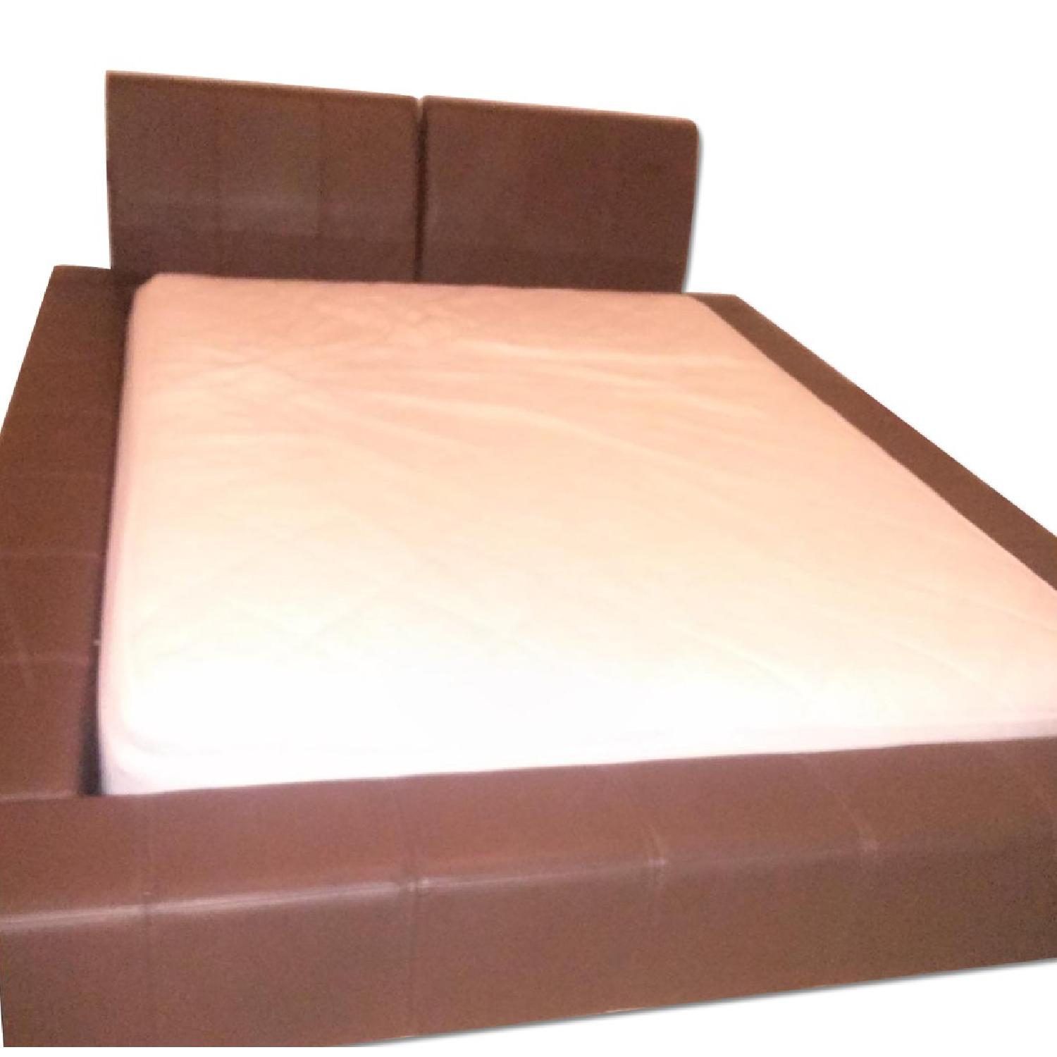 Seller's Notes:Designer bed from Dania Furniture. Best bed that I have ever had, but moving out of the country. It is an Atlantic Queen with upholstered frame. It is an espresso brown leather framing. It comes with two headboards which can be moved to other parts around the frame. We move it to one side when we want to sit in front of the bedroom fireplace and read. It really is the best bed ever. The bed is Medium firm...not plush and not firm. In-between. It was only slept on for 1 1/2 months.