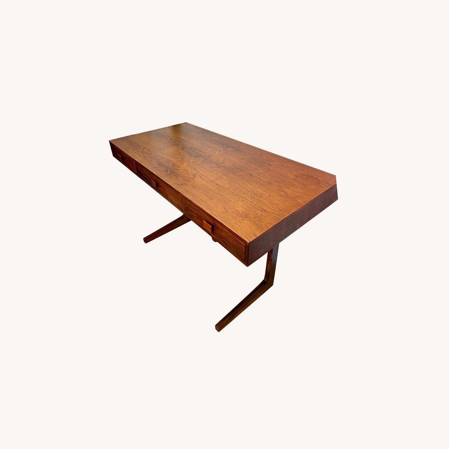 Seller's Notes:Beautiful cantilevered mid-century teak desk in excellent condition. Purchased in 1998 in Cambridge, MA from original owner, a Harvard professor.