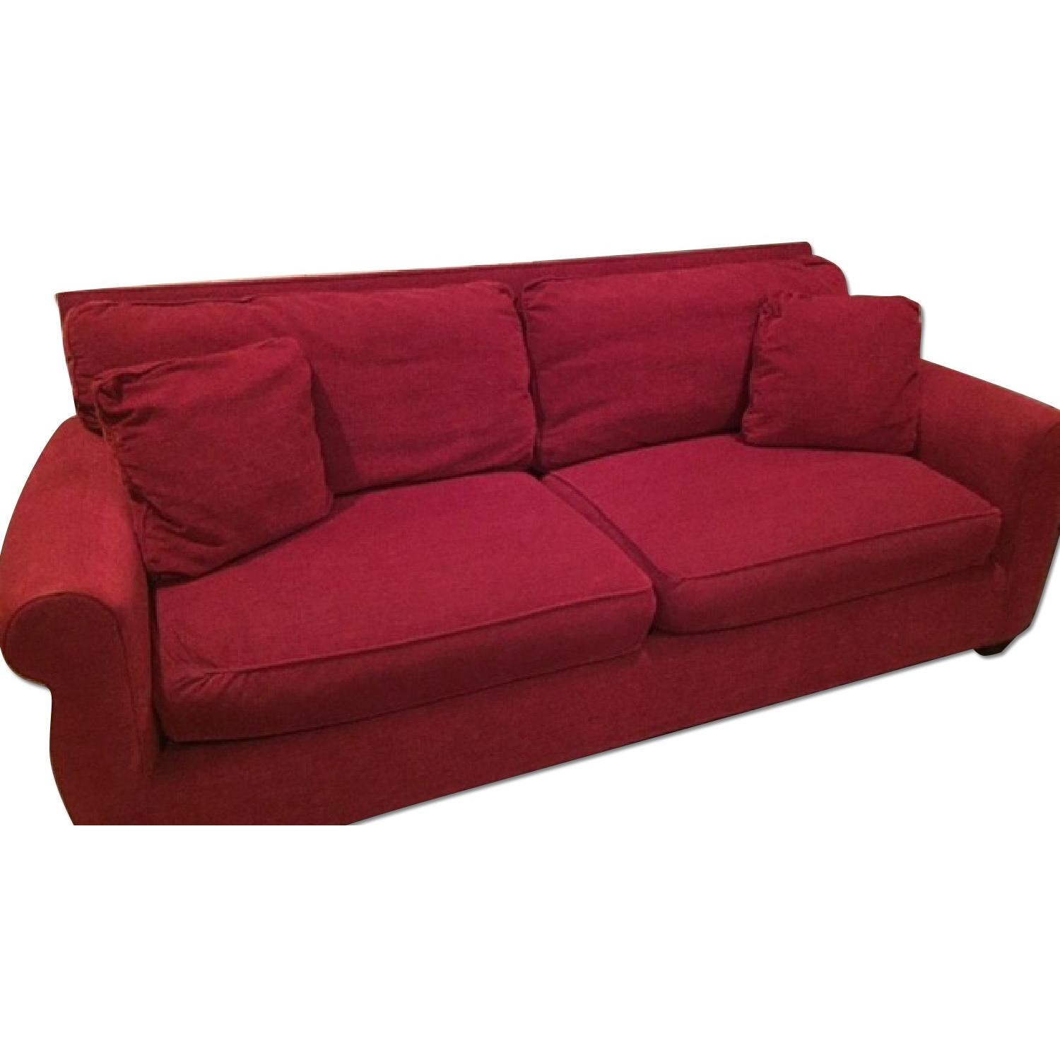 Seller's Notes:I was in love with the idea of a deep red colored couch as a focal point in my living space. I custom ordered this sofa with down-filled cushions from Danker Furniture (now Sheffield in Rockville MD) and paired it with a beautiful red/brown rug from pottery barn. It stayed in the living room that didn't get as much use as our family room so still in great condition. Unfortunately it doesn't work in our new house and I am forced to part with it.