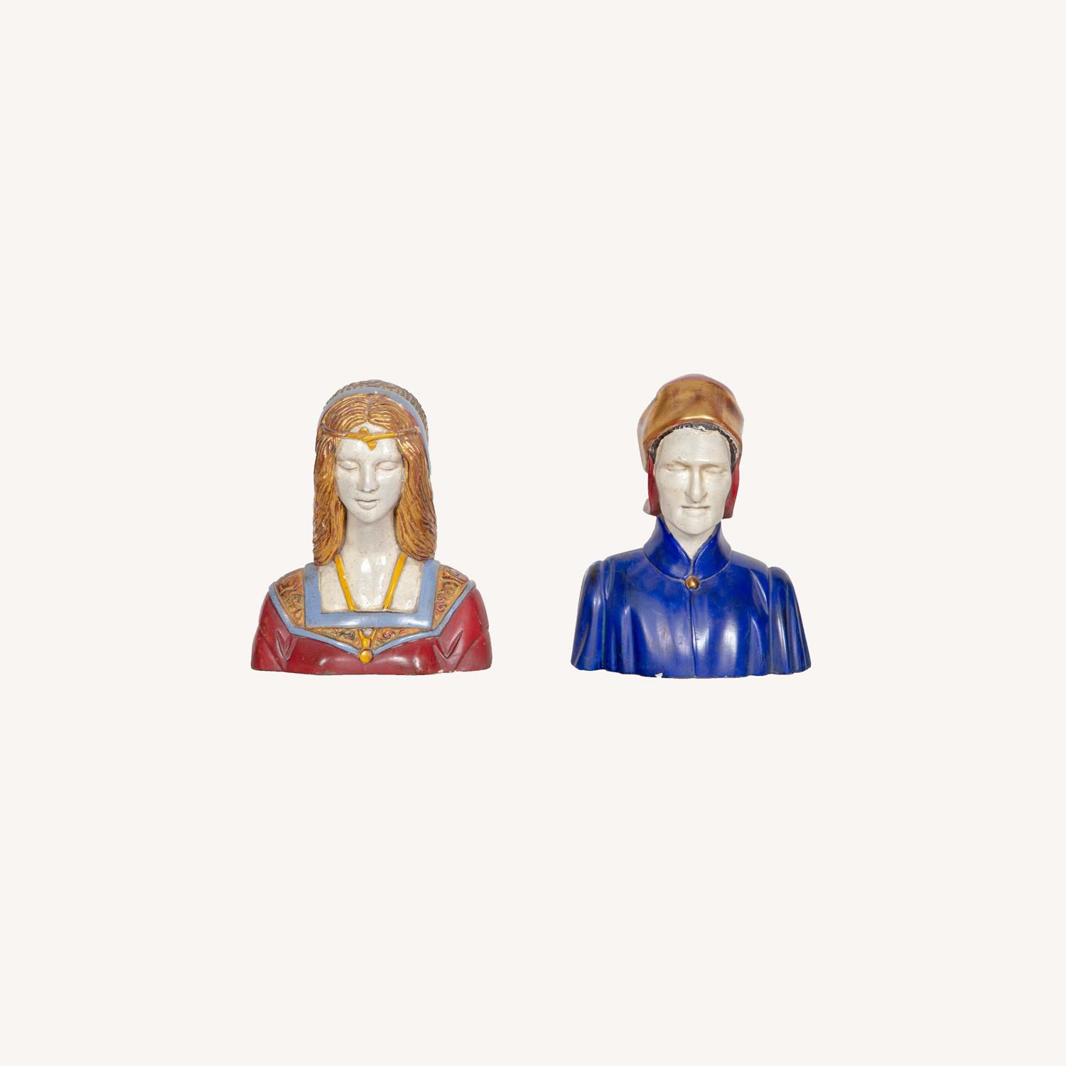 Seller's Notes:Dante Alghieri and Beatrice Portinari Unknown Artist Date: circa 1970 Painted Hand-Carved Wood Sculptures Size: 11.5 x 9.5 x 4 in. (29.21 x 24.13 x 10.16 cm) (each)
