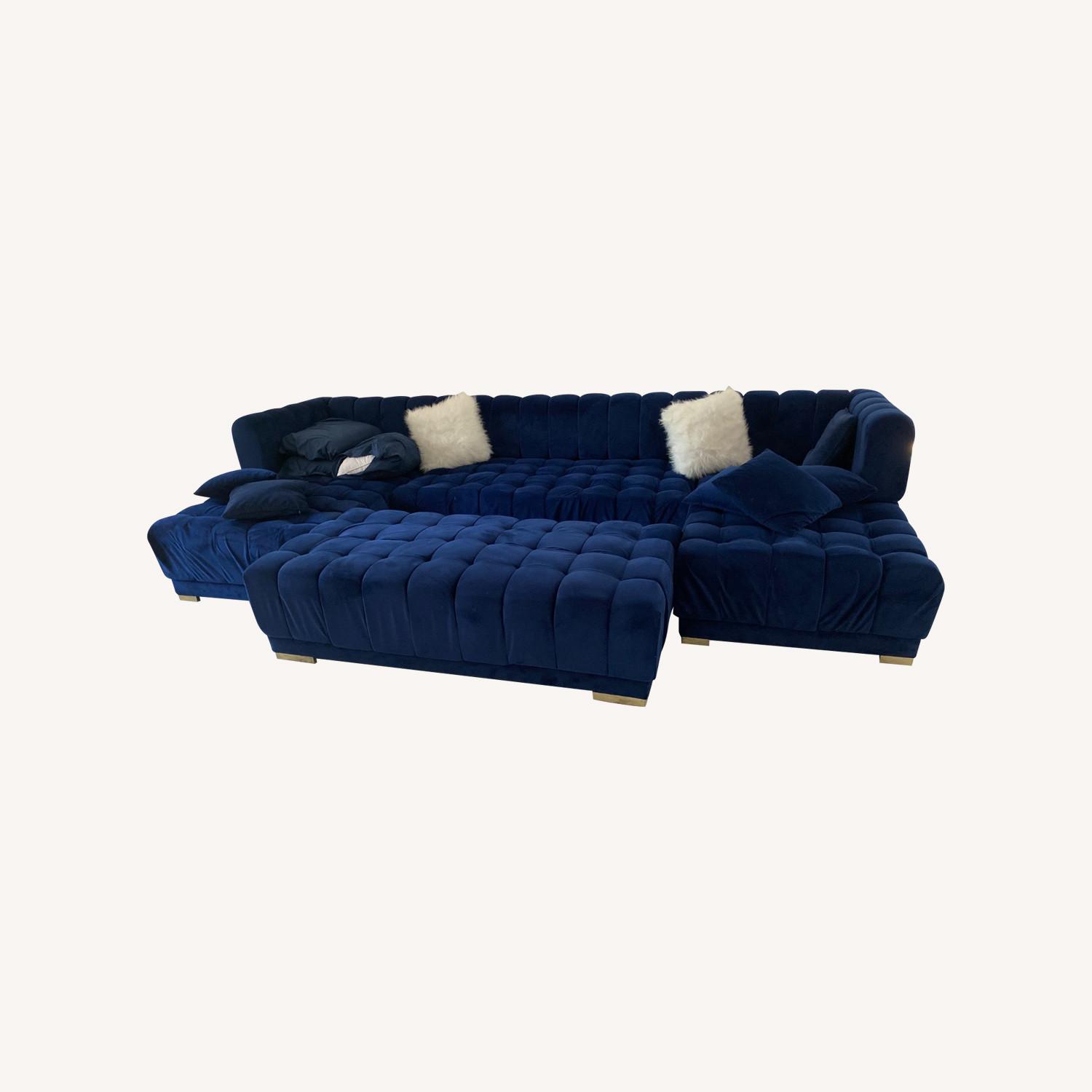 Seller's Notes:XXL U Dark Blue Sofa With Chaise