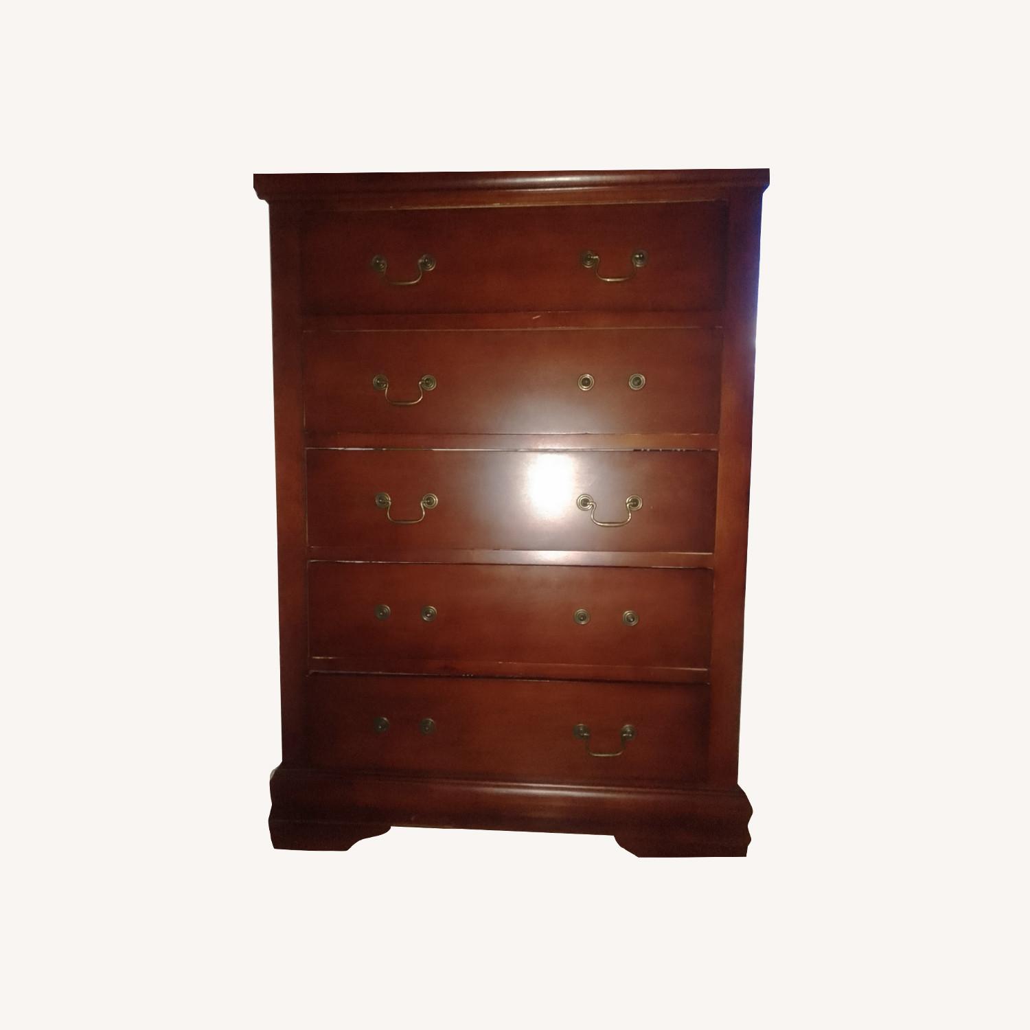 Seller's Notes:Used chester drawer. There are some cracks, some of the handles are missing (the handles can be screwed in and out). It has a secret draw up top. Sales final no return or exchange.