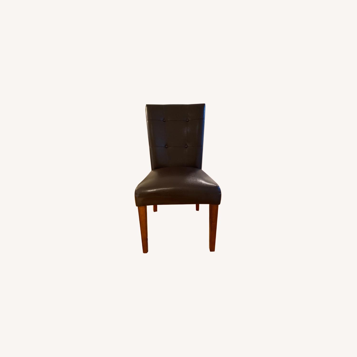 Seller's Notes:Great condition dining chairs in dark brown faux leather.