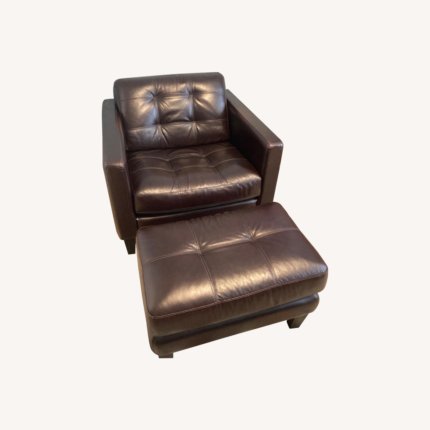Seller's Notes:Classy leather chair and ottoman originally purchased from Macy's furniture store. The chair and ottoman are both made of top quality leather.