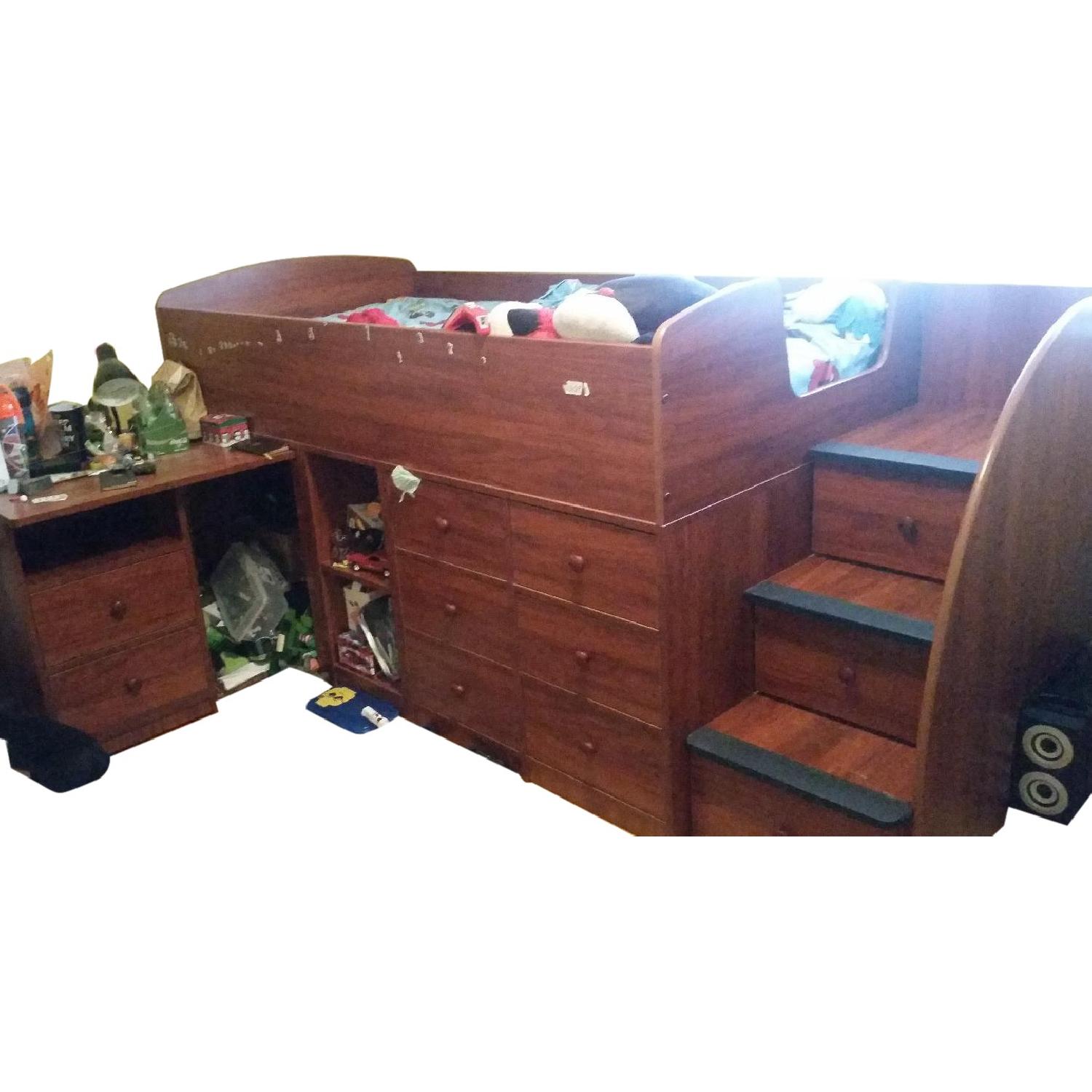 Dark Brown Loft Bed w/ Pull Out Desk & 11 Drawers