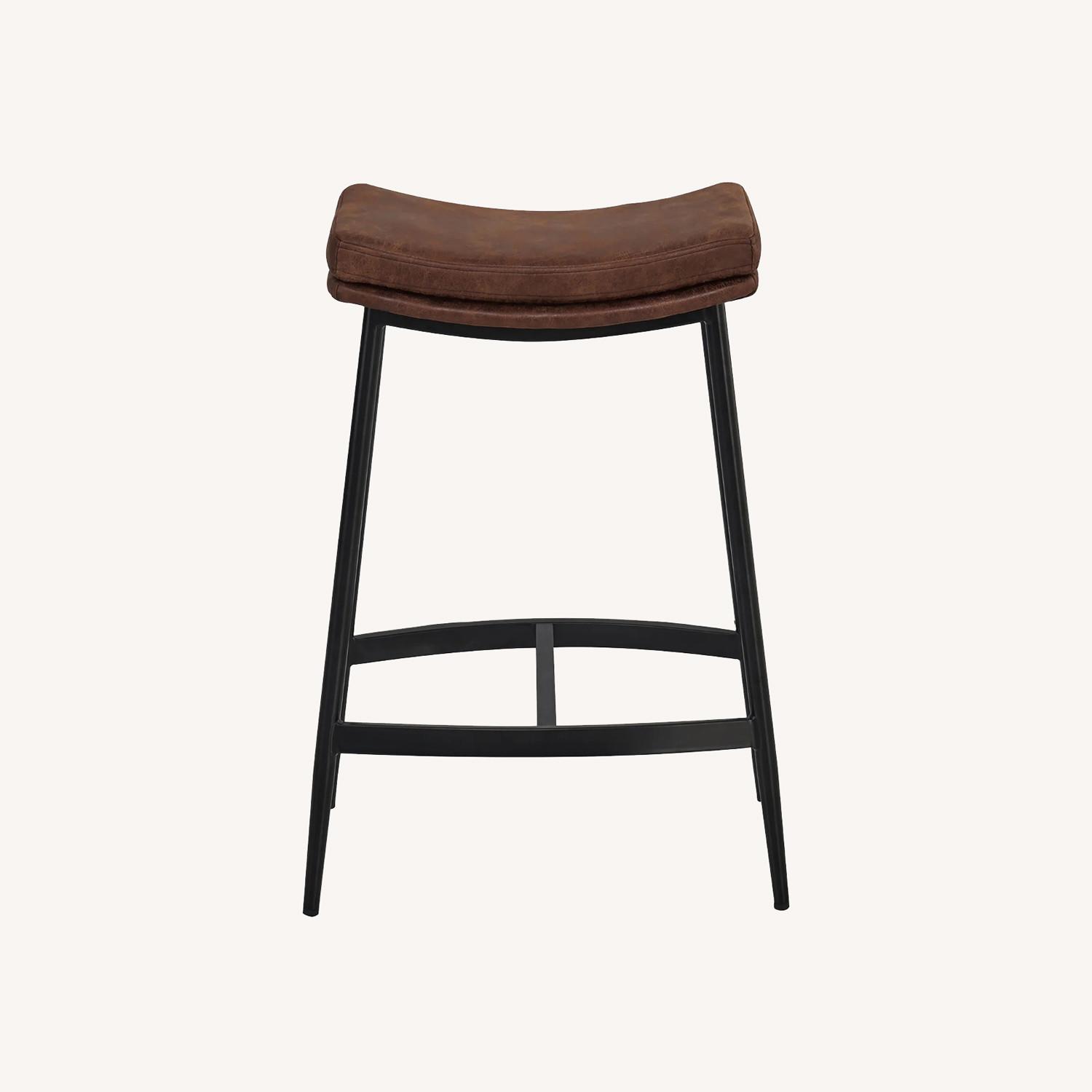 Rustic and modern all at the same time, the Arlo bar stool will bring out a level of sophistication to your kitchen island or breakfast nook you didn't know existed. Its double layered saddle seat provides optimal comfort, while the perfectly placed footrests give you the perfect excuse to sip on that glass of rosè a little while longer. The curved vintage brown seat is supported by an airy black powder-coated base that is strong enough to hold you or the occasional napping cat (275 lbs or lighter, please!). The Arlo stool may be just the final touch to complete your modern farmhouse kitchen!