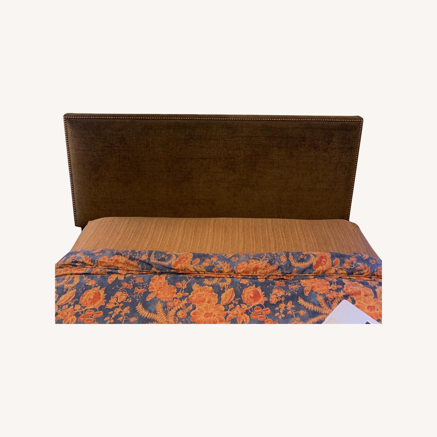 Dark Brown Upholstered Queen Headboard w/ Nailhead Trim