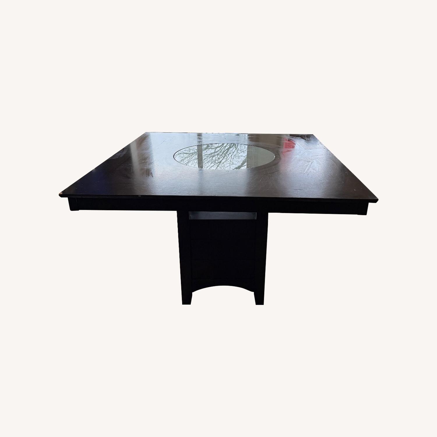 Seller's Notes:I have this high countertop dining room table with a lazy Susan and 3 high countertop chairs to go with it. We moved and it is too big for our new place