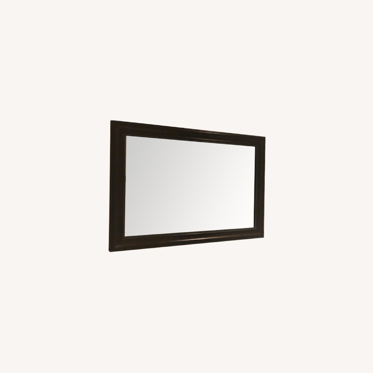Seller's Notes:This Dark Brown Wood-Framed mirror is the perfect decor piece for any wall or on top of any dresser! I have used this mirror as a hanging decor item for a few years and it has been a lovely entryway mirror in my home! Other than a few minor scratches and a small split in the corner of the frame (see images), this mirror is beautiful! Perfect size and lovely wood grain. Very easy to hang.