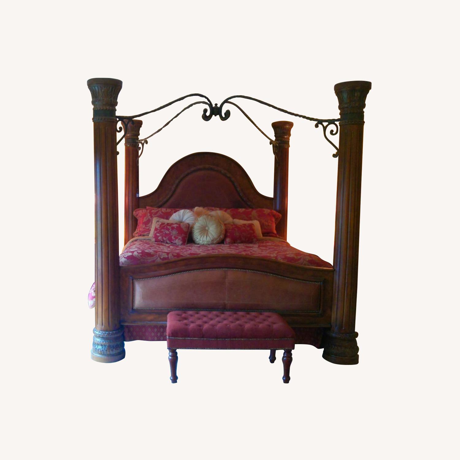 Dark Brown Wood & Leather King Bed