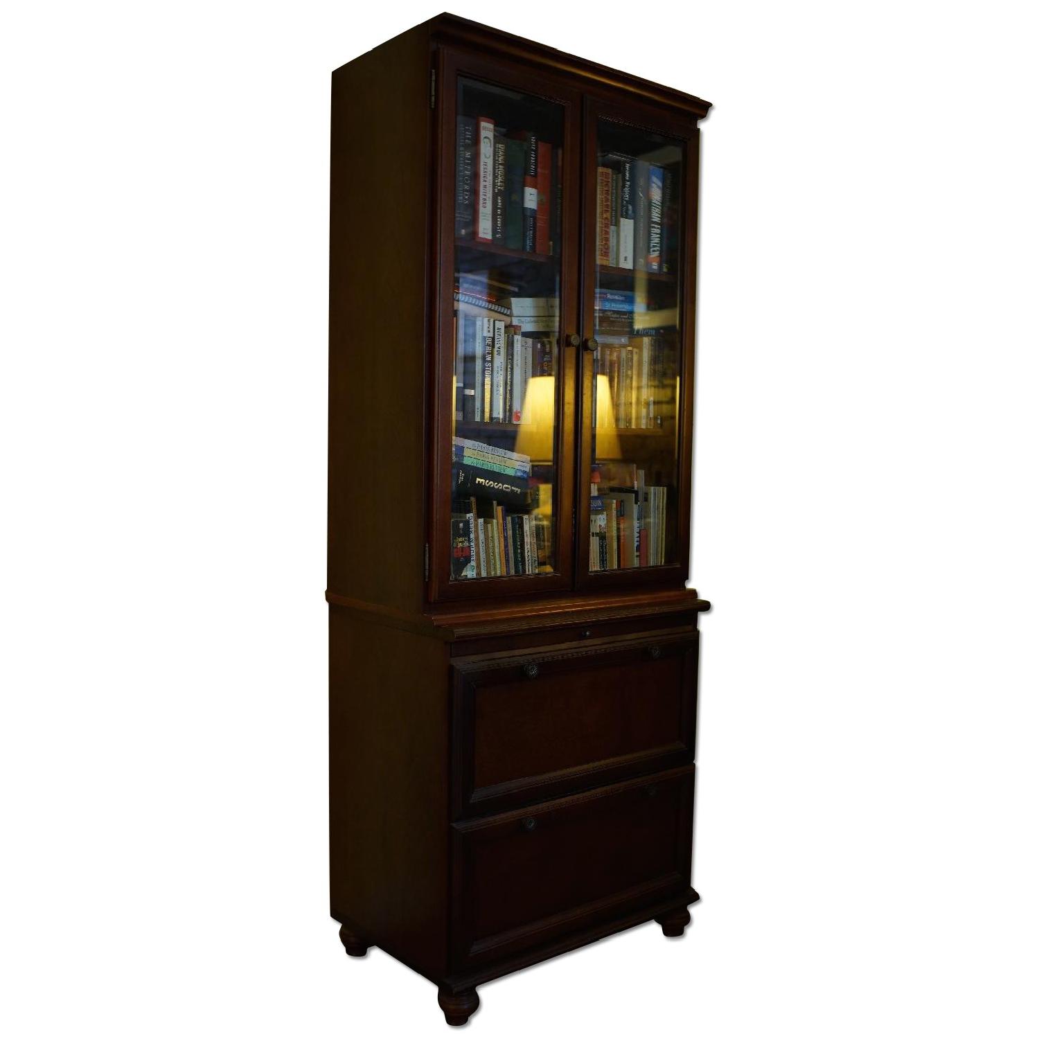 Dark Cherry Wood Bookcase w/ Matching Filing Cabinet Base