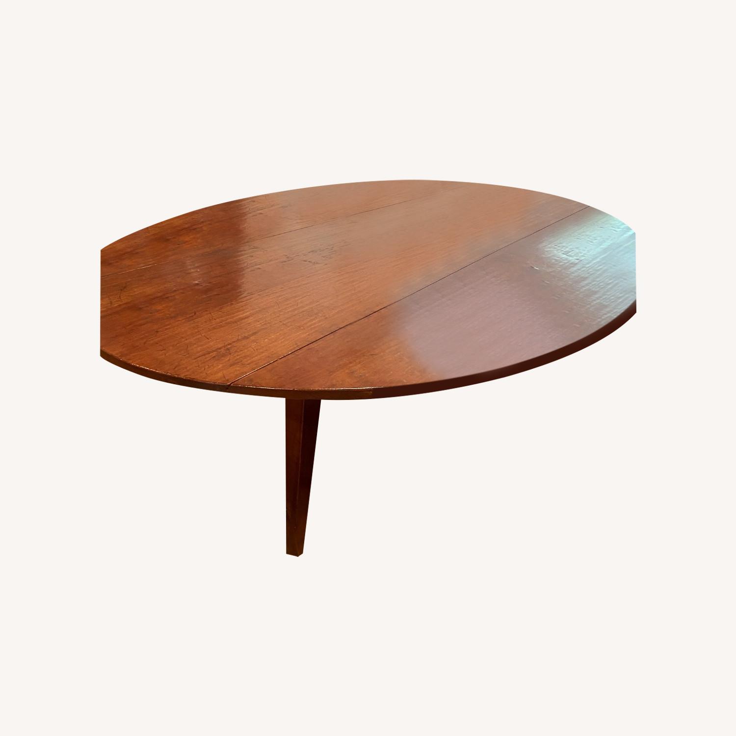 Seller's Notes:Excellent condition. Bought at ABC Carpet & Home. Antique Modern style. The legs of the table have a contemporary feel. Seats 12-14 people. Drop leaf style. When leafs are down, it measures at 24". Can be used as a harvest table. Selling chairs separately but can be purchased together.