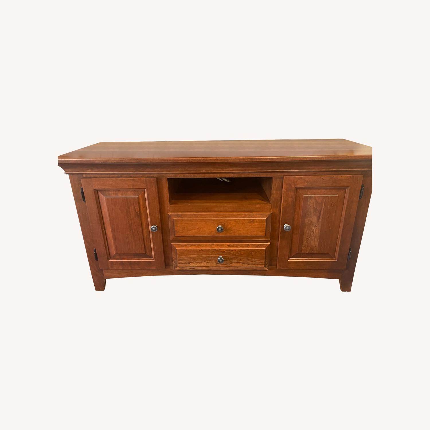 Seller's Notes:Looking for a solid wood media center to put in your living room? Look no further. This piece is sturdy and well built. There are a multiple light scratches, stains, and marks on the top of the piece due to normal wear and tear.