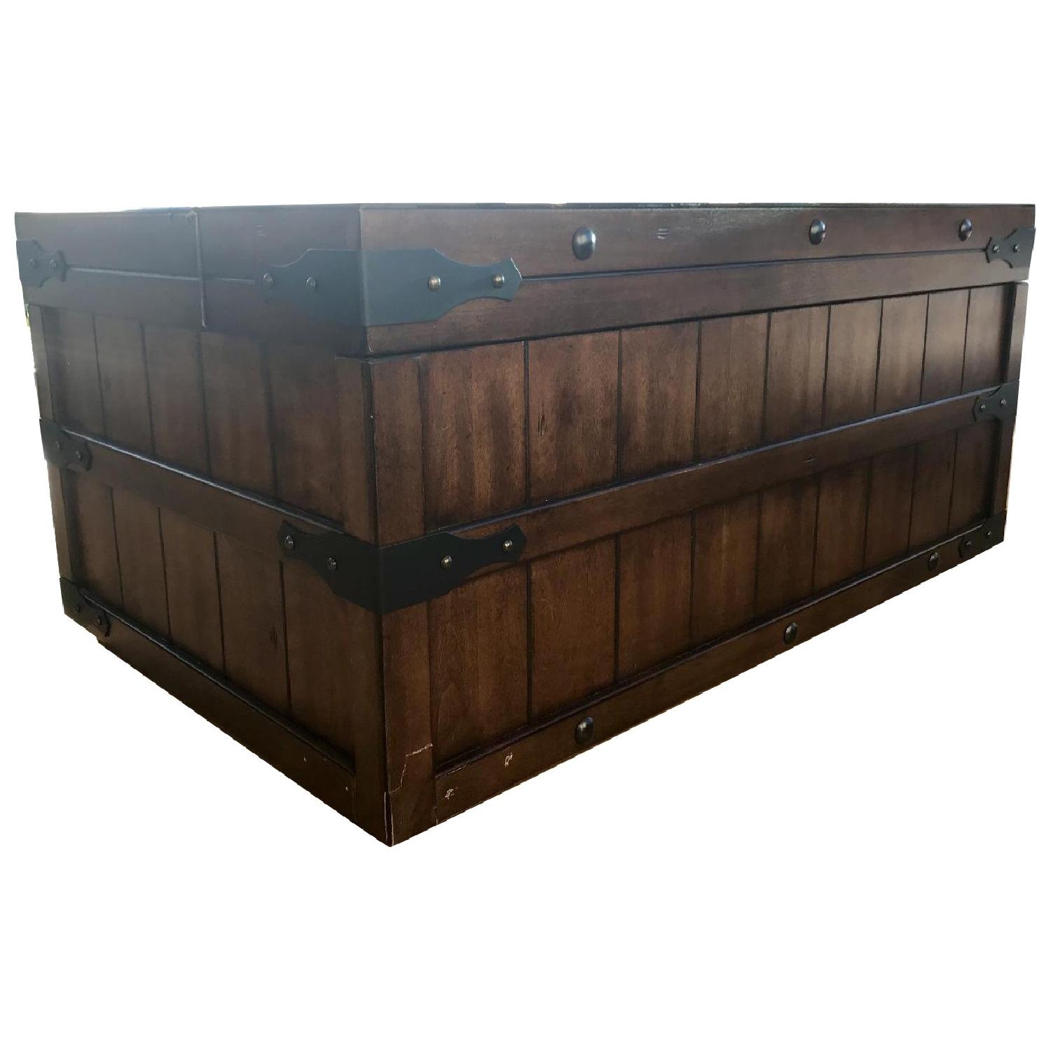Seller's Notes:Elegant dark wood trunk with large interior storage space, can be used as coffee table and/or storage chest. Minor mark on bottom right corner as depicted in image 4. Selling due to moving.
