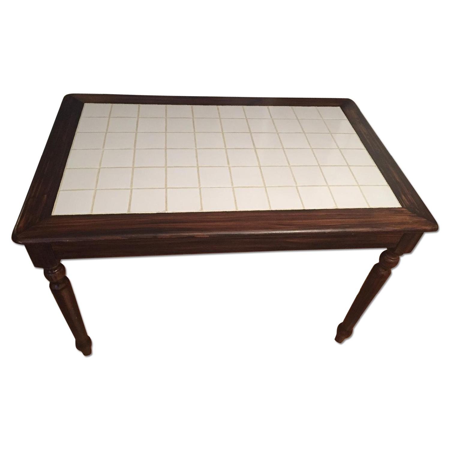 Seller's Notes:Solid wood and tile top kitchen table. Was light wood and has been stained dark and sealed. Has a few knicks in the wood and one of the tiles has a few very small