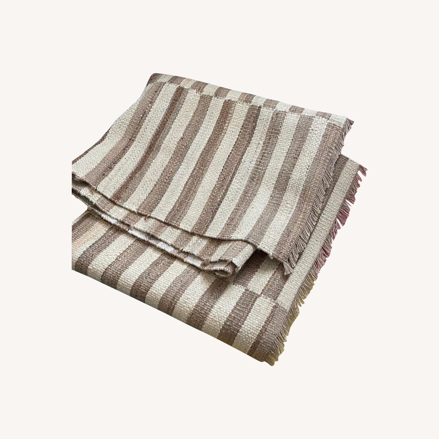 Seller's Notes:A balance of style and substance, this eco-friendly rug is handwoven in easy-care performance yarns that stay beautiful indoors and out. Flatwoven from resilient recycled P.E.T. threads, this durable, washable and fade-resistant rug feels as soft as cotton but will stand up to whatever life brings its way. Crafted by artisans committed to fair-labor practices. Perfect condition.