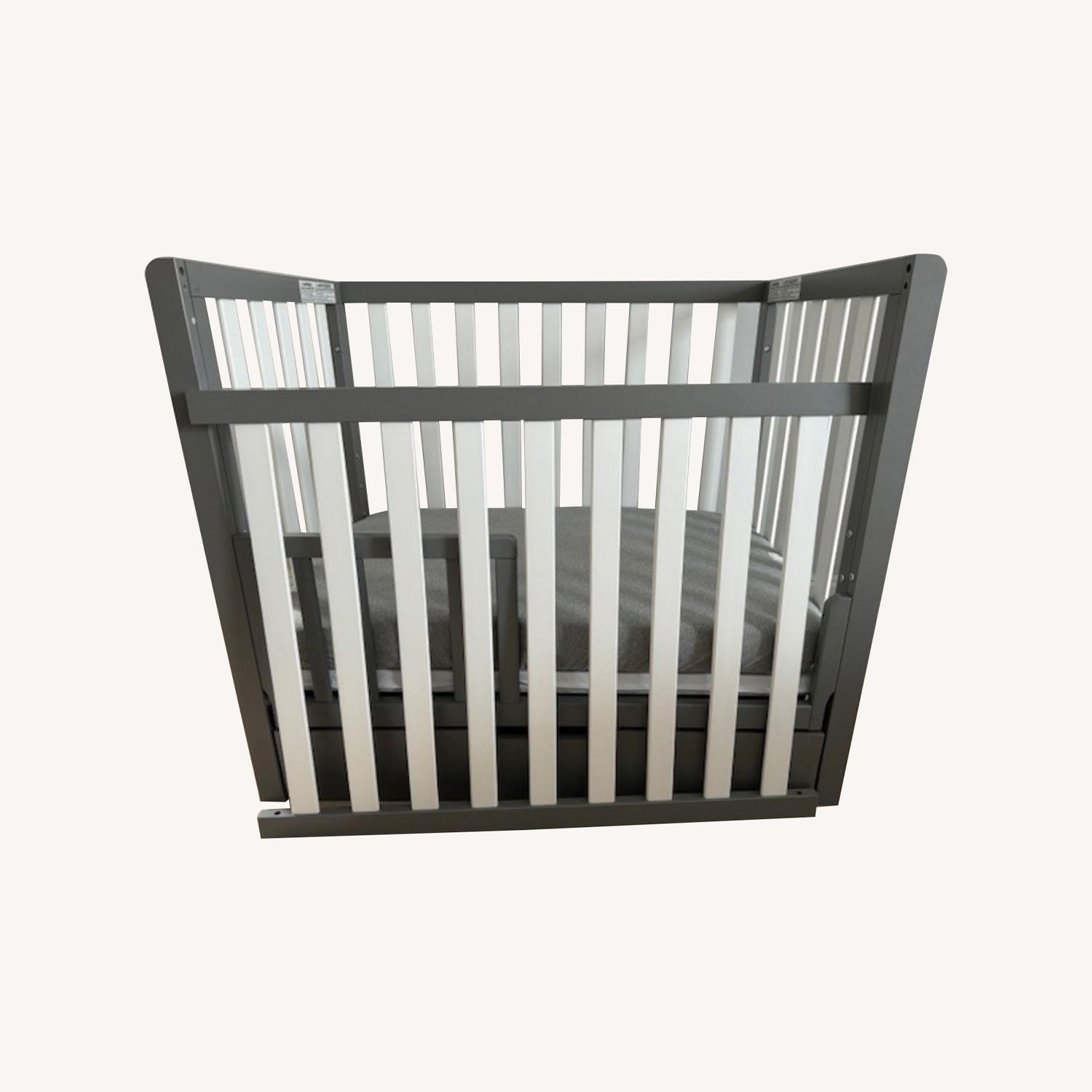 Seller's Notes:I'm selling this Davinci Baby Colby Mini Crib with Trundle, with "Complete Slumber Waterproof Mini Crib" Mattress and toddler bar add on as well. Pet free Smoke free There is a small manufacturing blemish on a surface, see picture. Used it for 18 months before upgrading my child to a twin floor bed. https://davincibaby.com/products/colby-4-in-1-convertible-mini-crib-with-trundle?_pos=3&_sid=3d537cee5&_ss=r https://davincibaby.com/products/mini-toddler-bed-conversion-kit-m20399?variant=28303644786781 https://davincibaby.com/collections/mattresses-and-pads/products/complete-slumber-waterproof-mini-crib-mattress-firm-support-greenguard-gold-certified-lightweight-waterproof