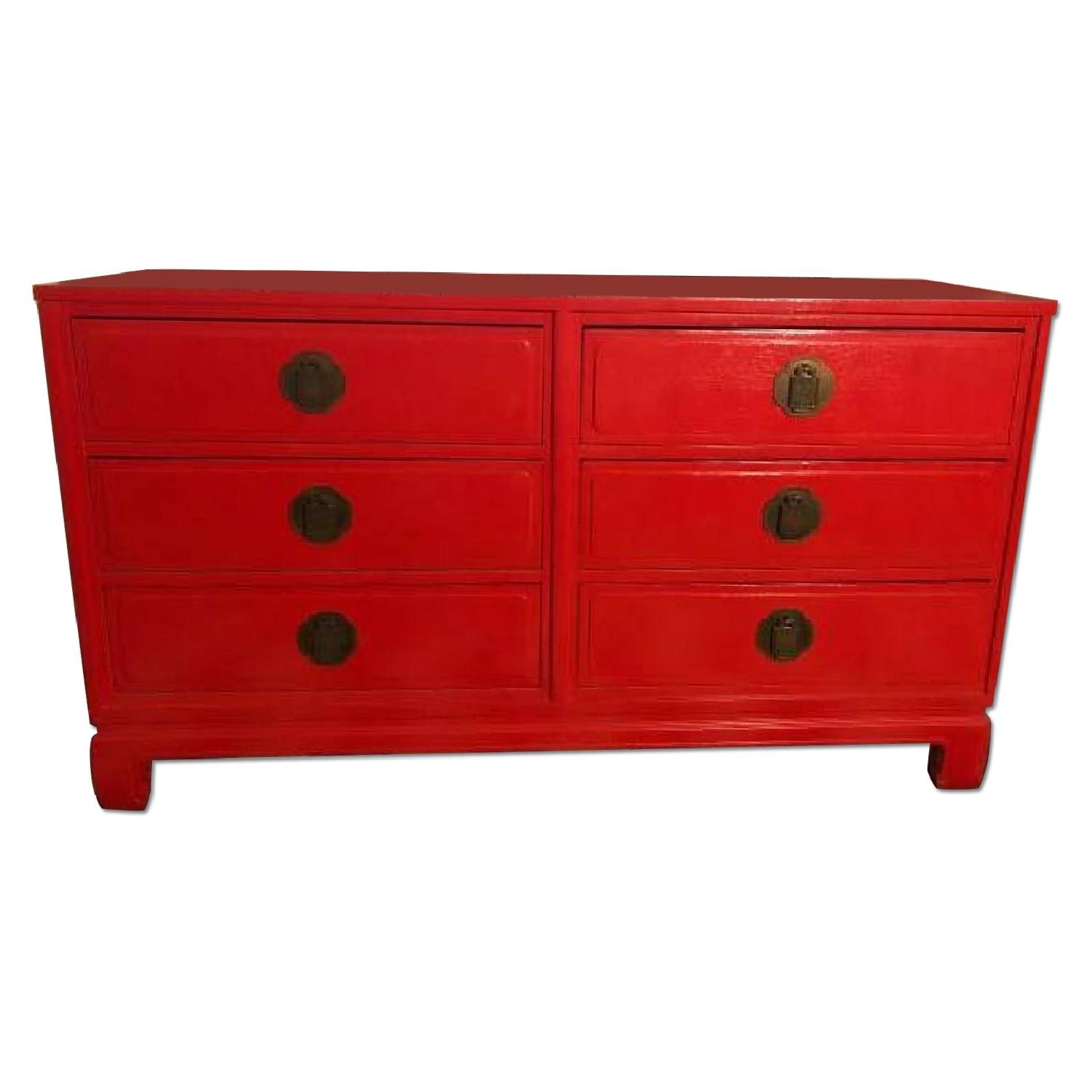 Seller's Notes:Solid wood dresser by Davis Cabinet Company (http://www.daviscabinetcompany.com/). Previous owner had it professionally painted red. Has a few blemishes (shows in pics) that aren't hardly noticeable. Fun piece that always receives compliments. All drawers are in good condition.