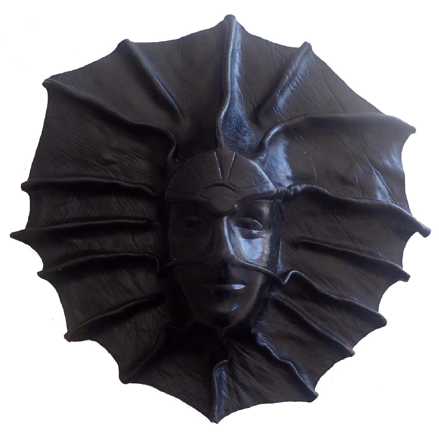 Seller's Notes:SCULPTED Leather FACE MASK Wall Art DECORATIVE Home Decor Tribal FOLK ART Gothic Easy to hang Size 50cm x 50cm