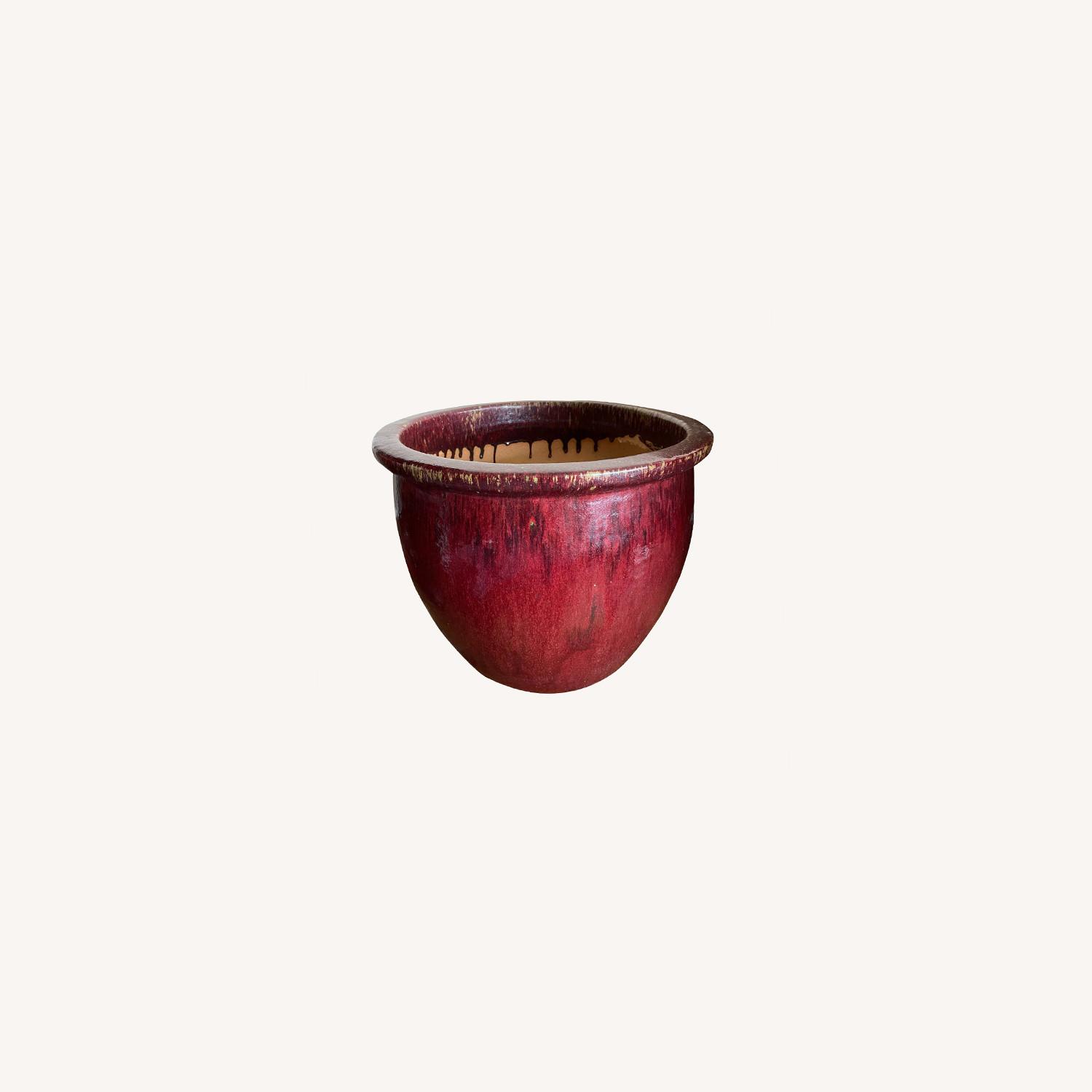Seller's Notes:Deep red glaze is applied over a green glaze, which is visible near the rim as a feature rather than a defect. Interior is glazed about 3" down. I'm liquidating a relative's estate, so the item must be picked up on or before Sun., Sept. 26.